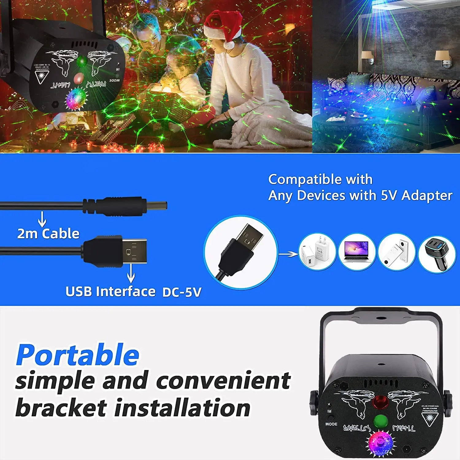 * Этот мини-лазерный свет изготовлен из алюминиевого материала, который очень компактный и мощный. Этот сценический лазерный свет был приведен в действие через usb-кабель, который поставляется с комплектом, usb-порт может быть заряжен компьютером, блоком питания или любым устройством с usb-портом.* ИК-пульт, по сравнению с другими портативными сценическими лампами, наши беспроводные лазерные огни разработаны с голосовым активированным режимом или интеллектуальным режимом, вы можете легко переключаться между двумя режимами, нажав кнопку. Питание пульта дистанционного управления от батареи 2 * CR2025 (батарея не входит в посылка)* Лазерные огни с красными и зелеными лазерами подходят для очень счастливых случаев, таких как свадьбы, дни рождения, вечеринки, Вечеринки На Хэллоуин, новые вечеринки, дискотеки, танцы, рождественские вечеринки, вечеринки в бассейне, праздники и т. Д.* Это безопасно как игрушка для взрослых, так и для детей. И этот светильник очень яркий с мини-размером и легко носить с собой. Может быть помещен непосредственно на стол или стол, или он может быть закреплен на стене, крыше и лобовом стекле автомобиля. Легко создавать динамичную и яркую атмосферу.