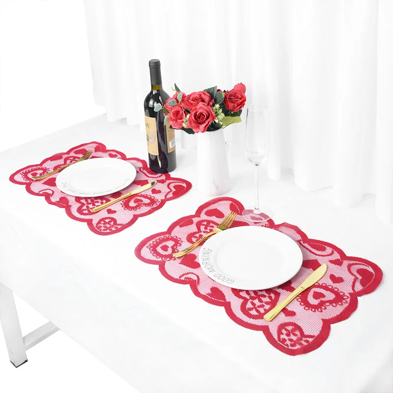 Настольная подставка принт красное сердце скатерть Декор любовь скатерть красное кружево Свадебная вечеринка День Святого Валентина подарок домашний скатерть