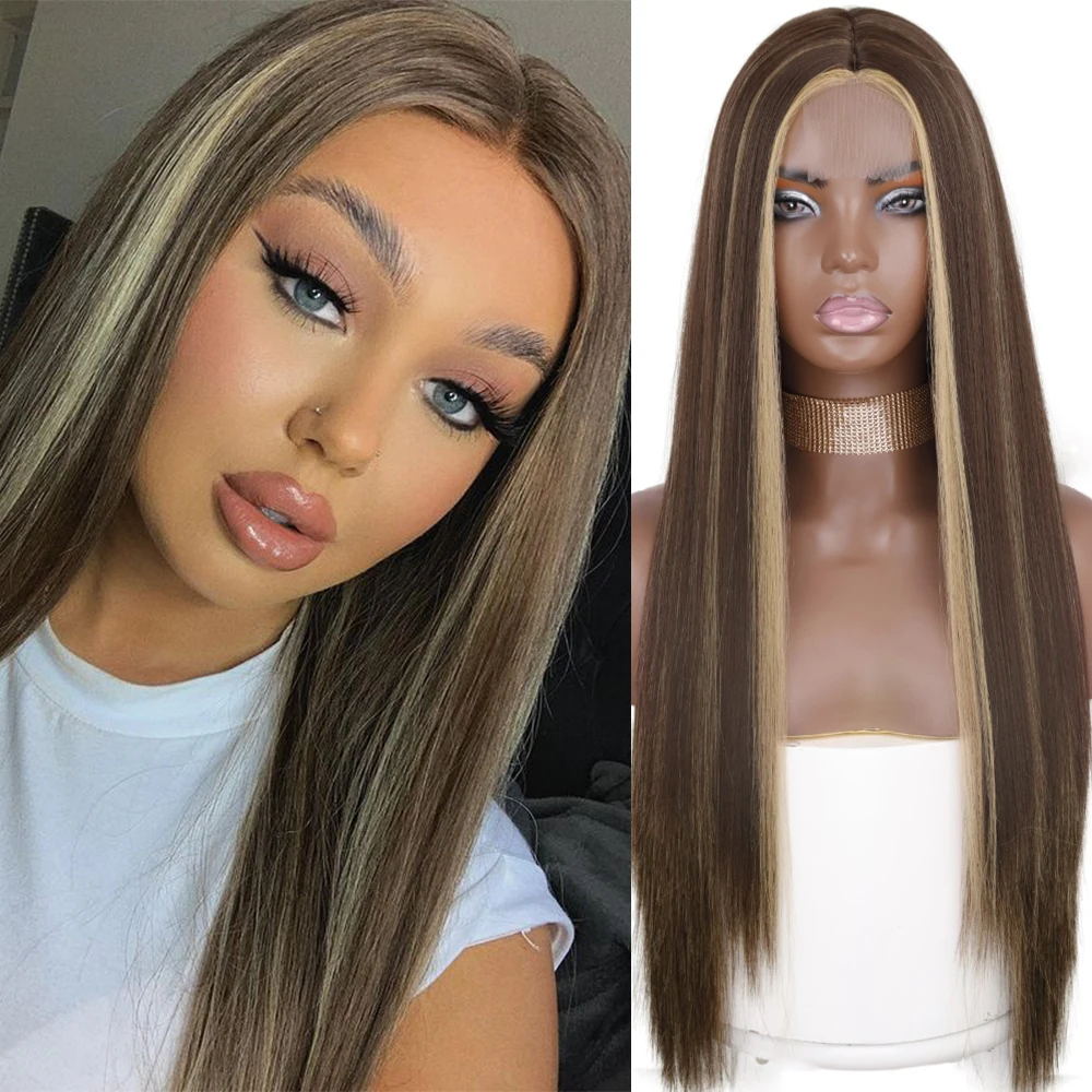 Синтетические парики AZQUEEN для женщин, Длинные прямые светлые сре...