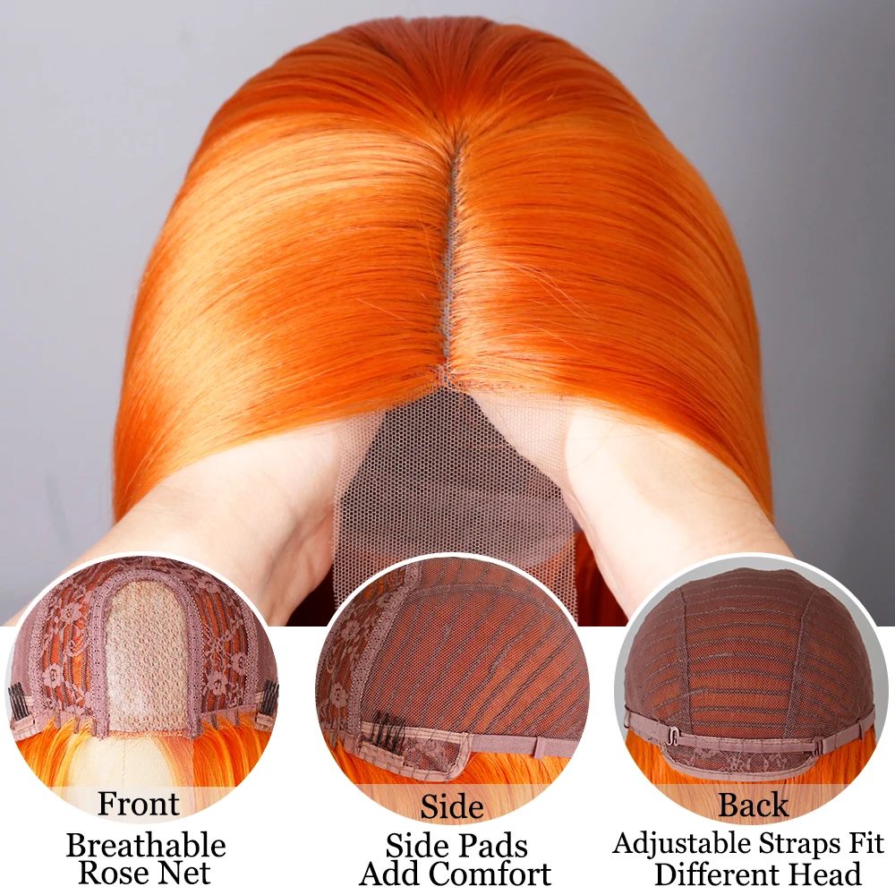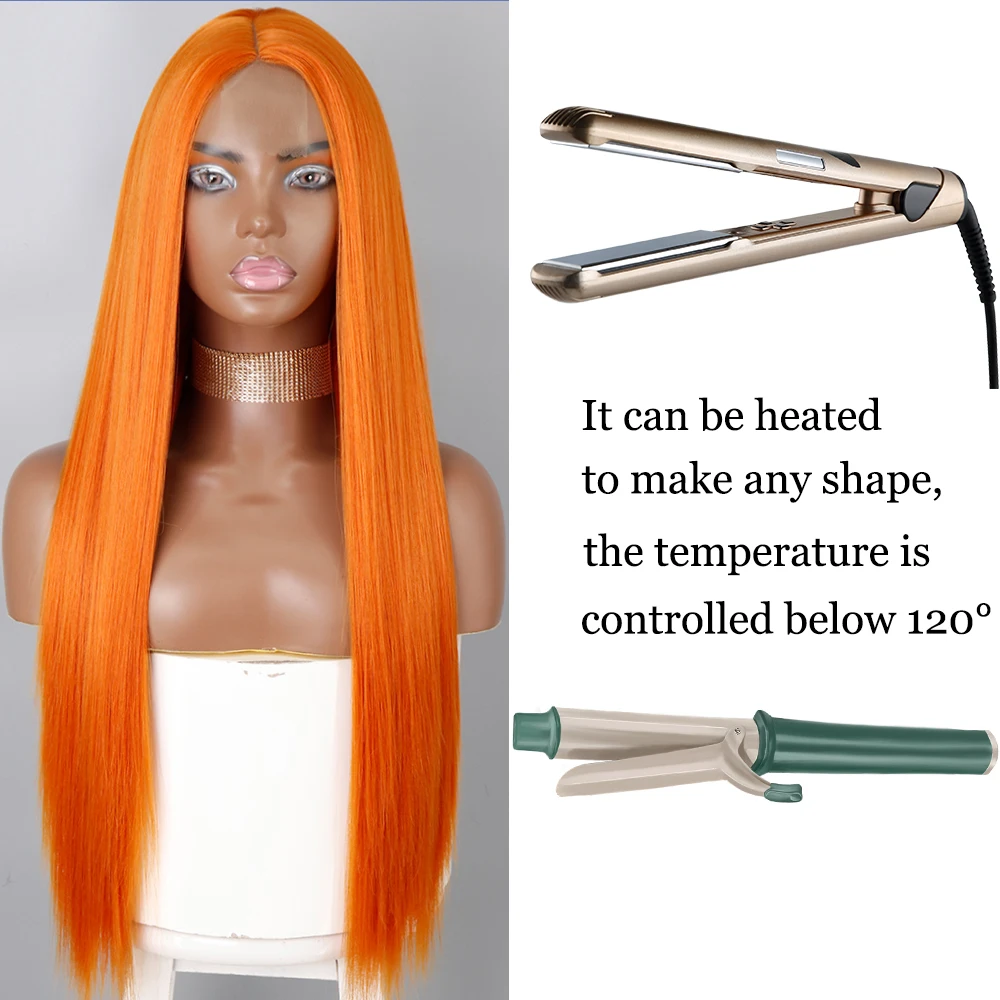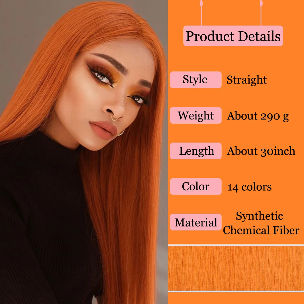 Синтетический оранжевый длинный прямой парик с челкой AZQUEEN, косп...
