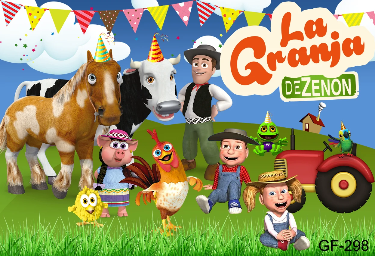 Виниловый фон для фотосъемки с изображением зеленой травы, животных, фермы, детского дня рождения
