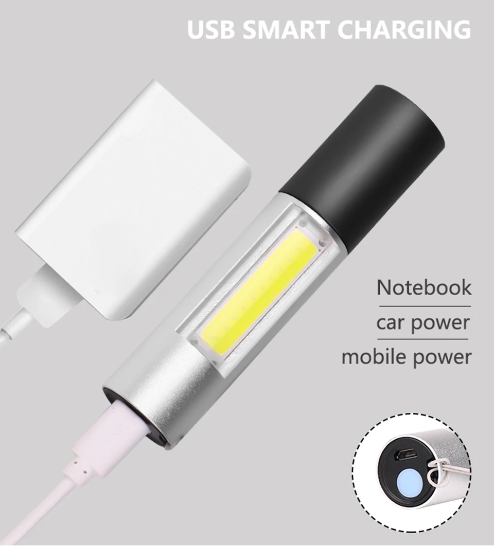 Миниатюрный светодиодный фонарик с зарядкой по USB, суперъяркий Водонепроницаемый COB фонарь с 3 режимами, Портативный Ночной светильник с зумом для кемпинга, велоспорта