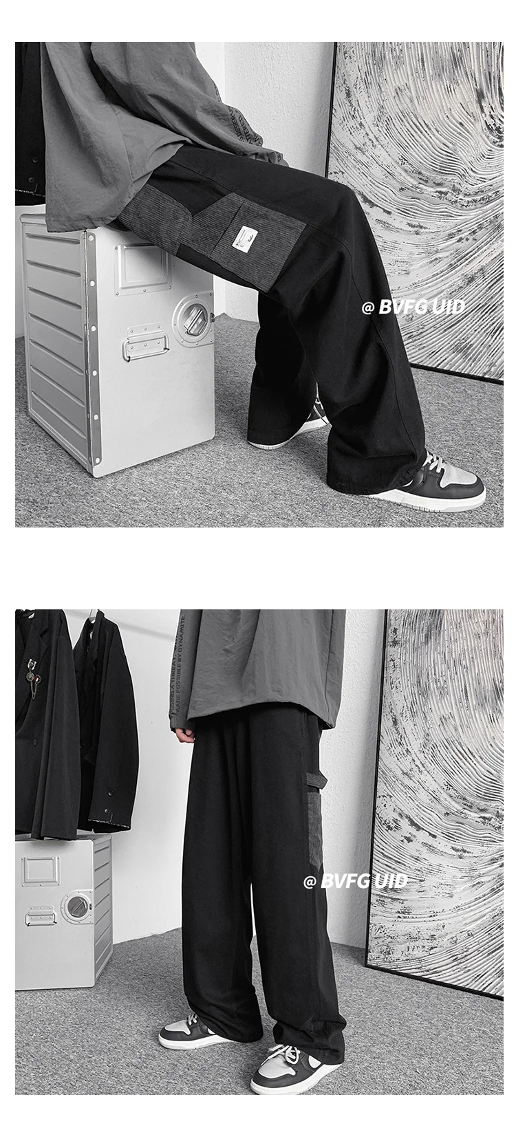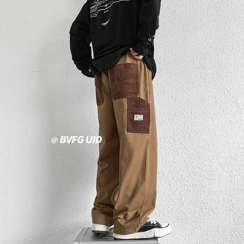 Брюки-карго Hybskr мужские с широкими штанинами, модные штаны в стиле пэчворк, уличная одежда в стиле Харадзюку, повседневная одежда в стиле хип-хоп, большие размеры