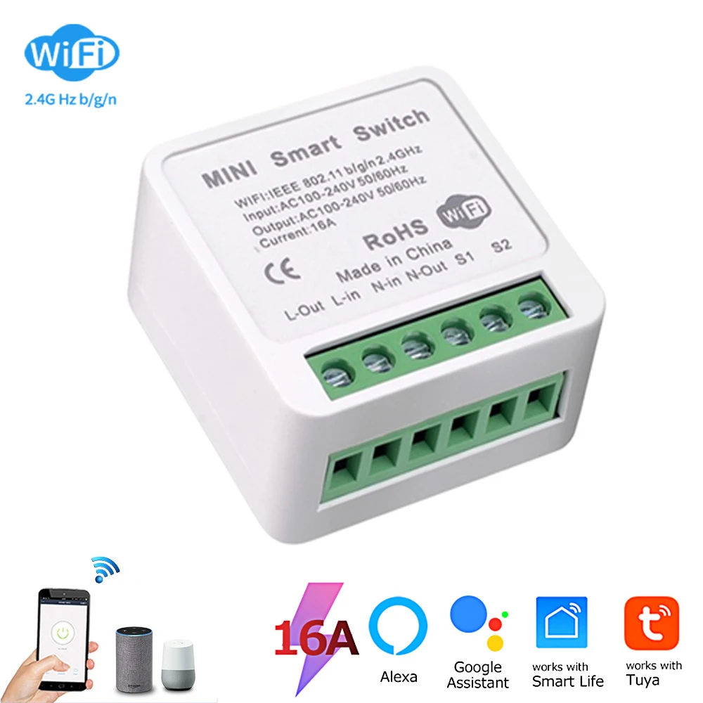 Умный Wi-Fi переключатель Tuya, беспроводной мини-переключатель с поддержкой Alexa и Google Home, с голосовым управлением, Модуль Автоматизации сделай сам с приложением SmartLife