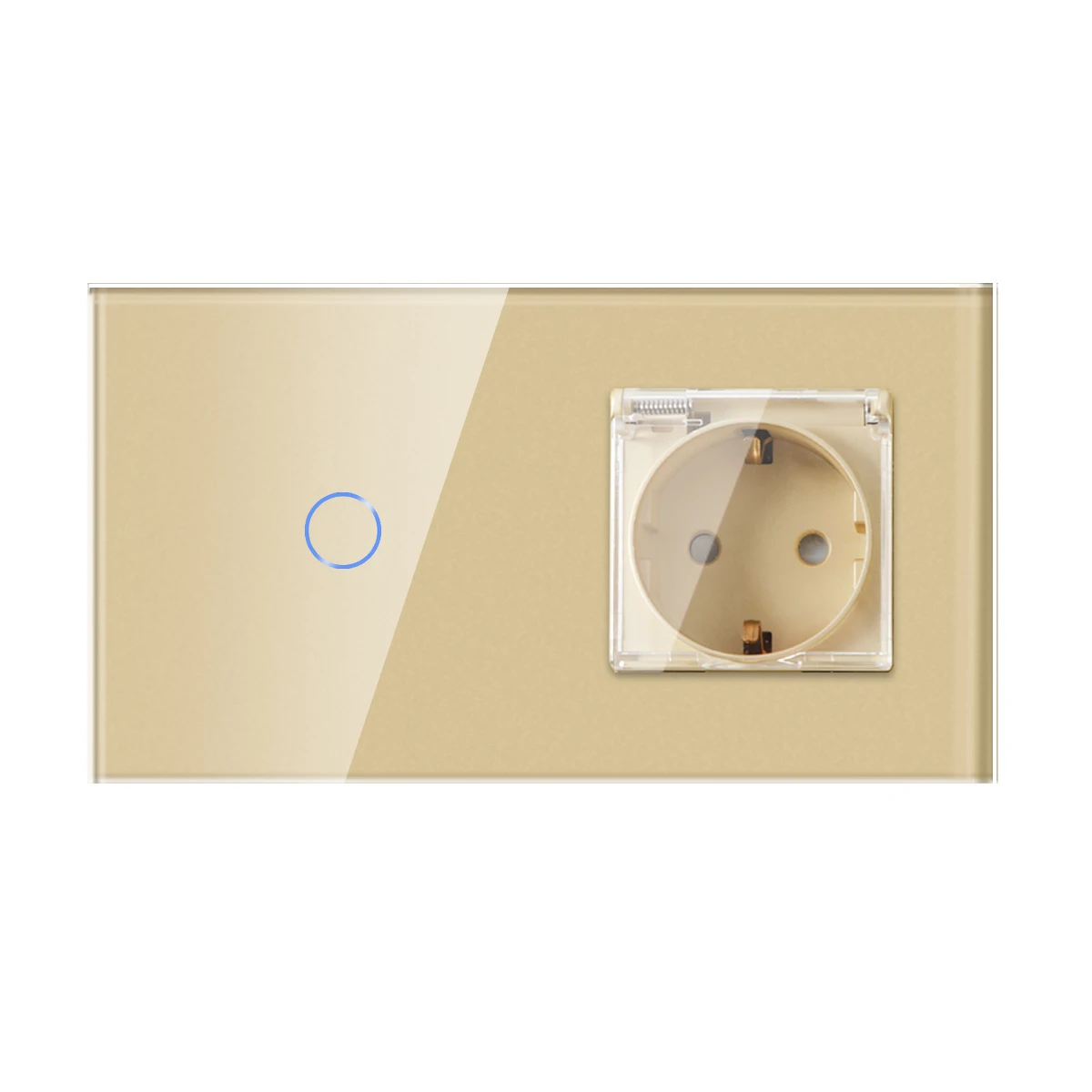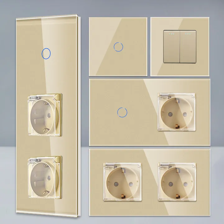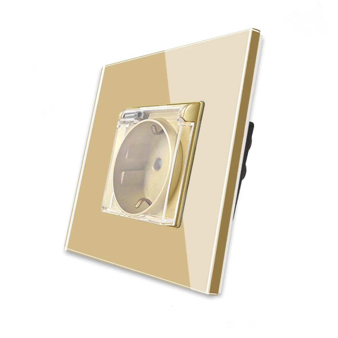 Bingoelec, золотой сенсорный выключатель света и водонепроницаемая розетка с кристальной стеклянной панелью для улучшения дома