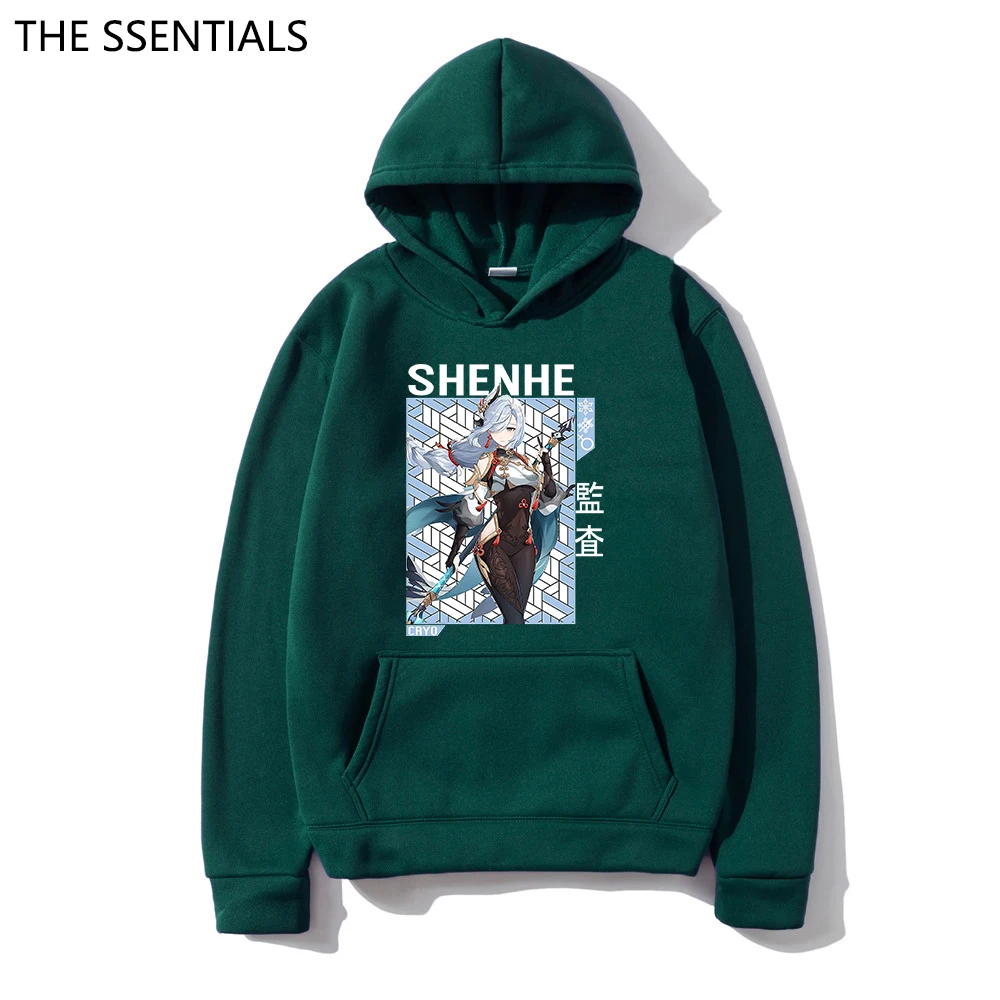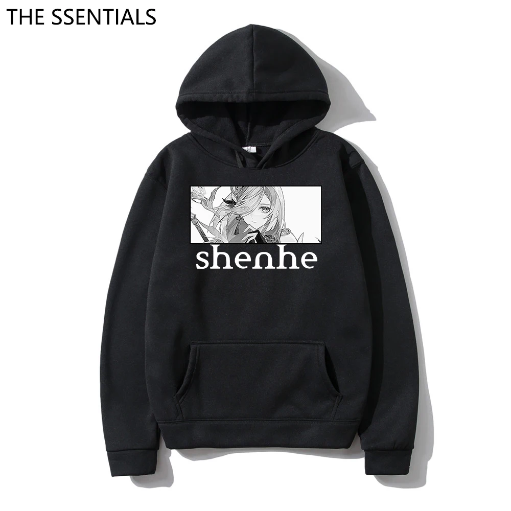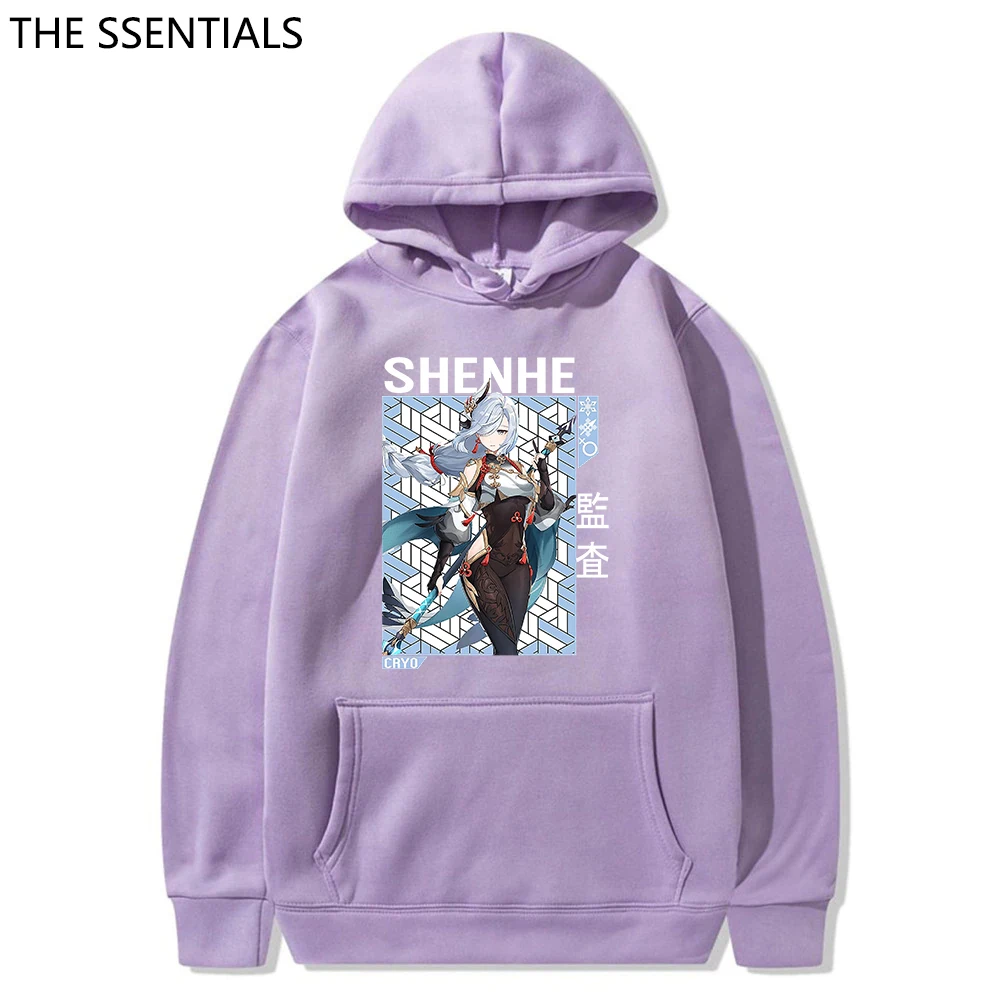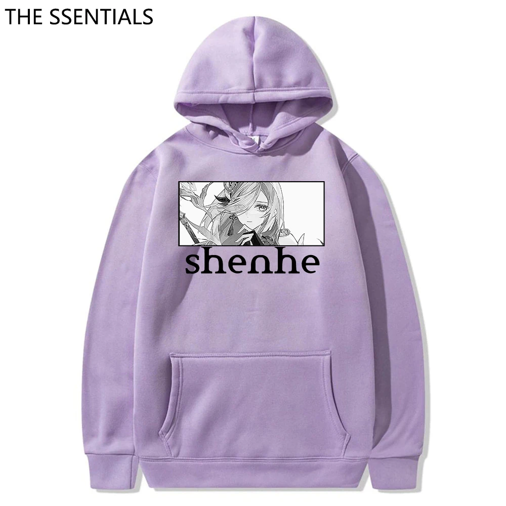 Толстовка Shenhe мужская с рисунком Харадзюку, милые толстовки Genshin, зимний эстетичный пуловер унисекс, толстовка Genshin с капюшоном Merch