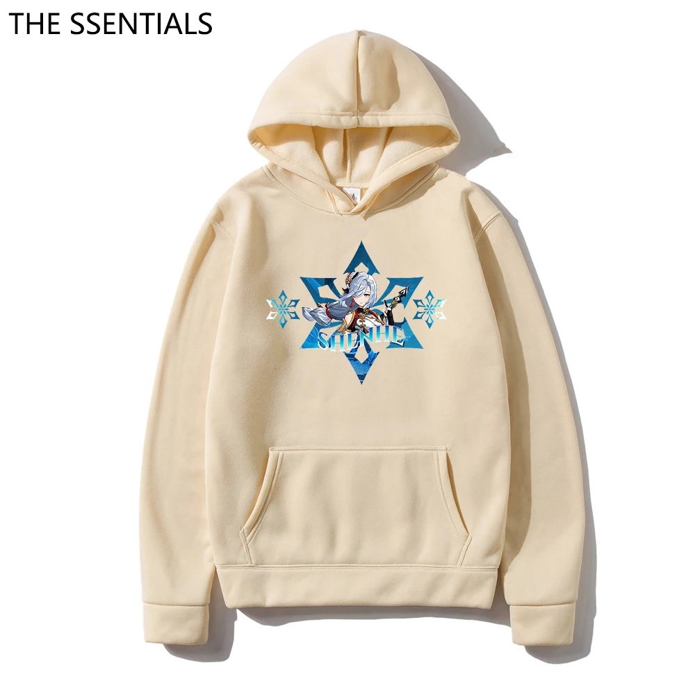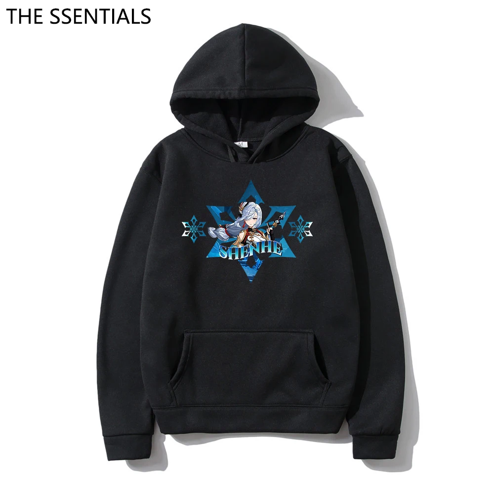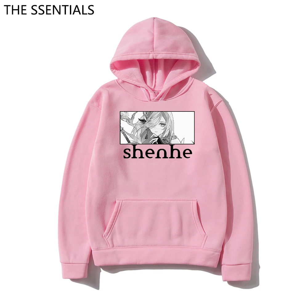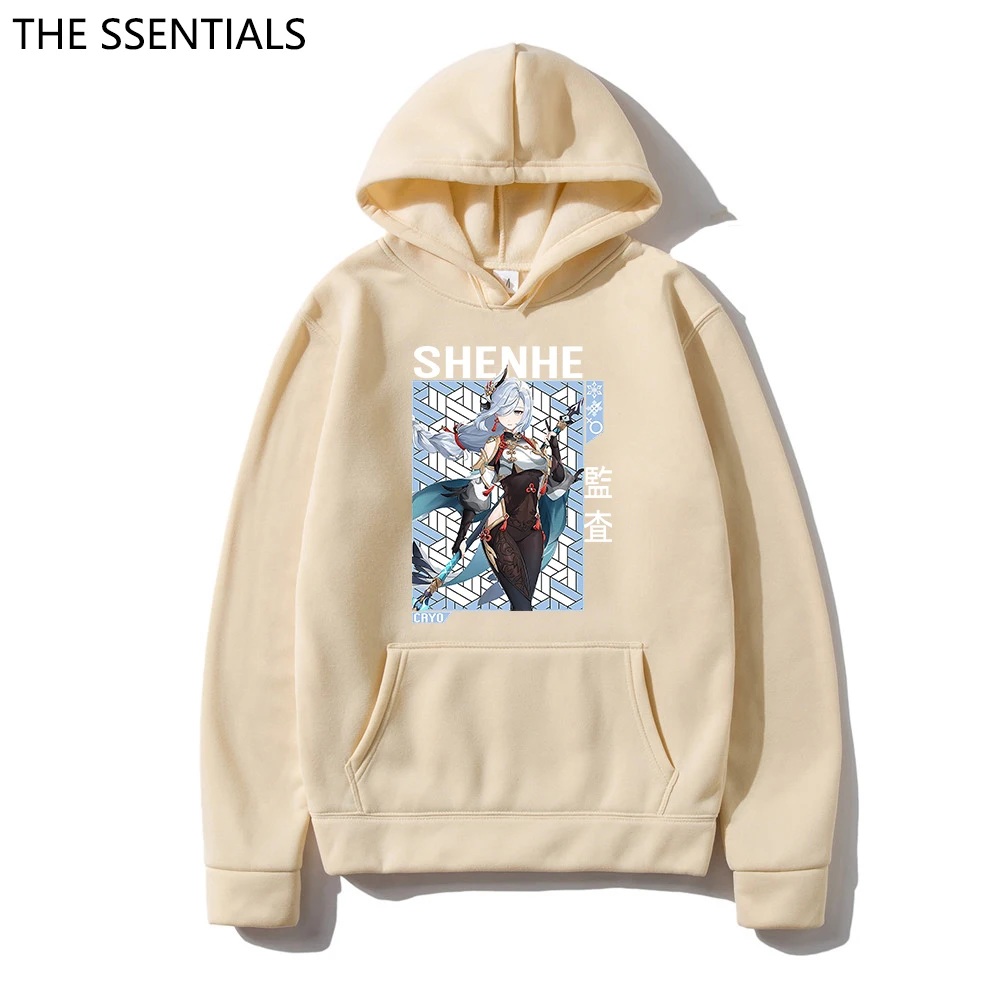 Толстовка Shenhe мужская с рисунком Харадзюку, милые толстовки Genshin, зимний эстетичный пуловер унисекс, толстовка Genshin с капюшоном Merch