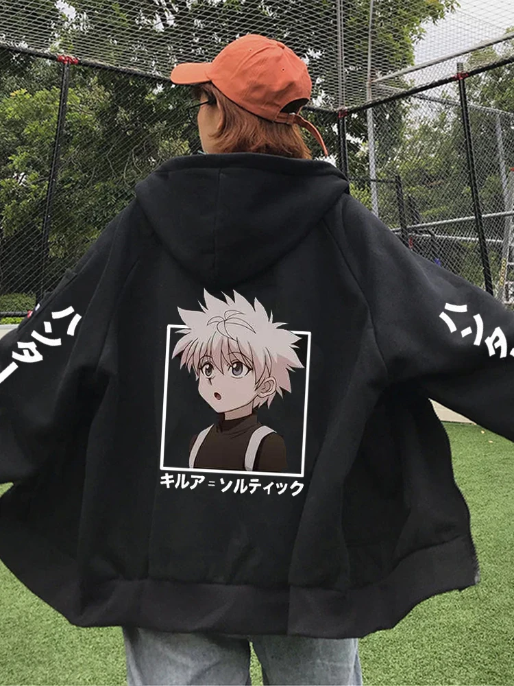 Толстовка унисекс Hunter X Hunter Killua Zoldyck на молнии, уличная одежда размера плюс, куртки, пальто, флисовая толстовка с длинным рукавом и молнией, аниме