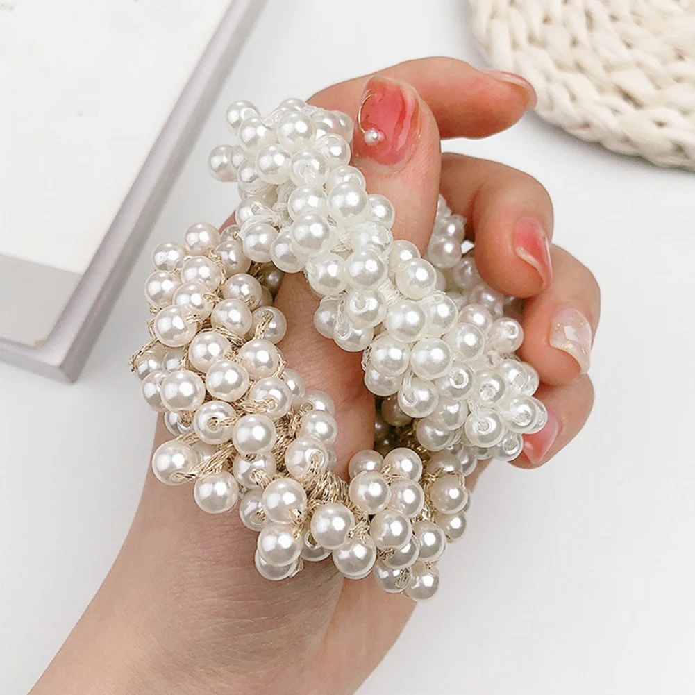 Резинки для волос с жемчужинами и бусинами женские, эластичные заколки для хвоста, аксессуары для волос