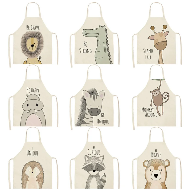 Фартук для готовки с мультяшным животным, для детей, для дома, без рукавов, из хлопка и льна, фартуки с изображением Ежика льва, на заказ, нагрудник, фартуки