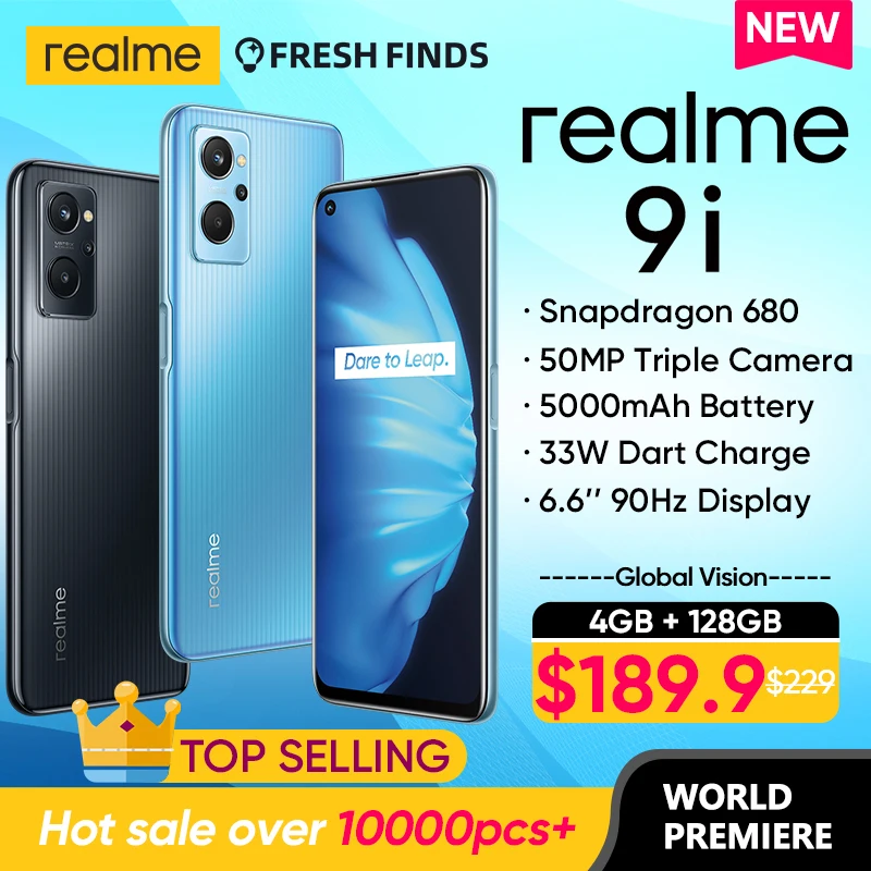 Смартфон глобальная версия realme 9i, Snapdragon 680, экран 6,6 дюйма, 90 Гц, камера 50 МП, аккумулятор 5000 мАч, зарядное устройство 33 Вт
