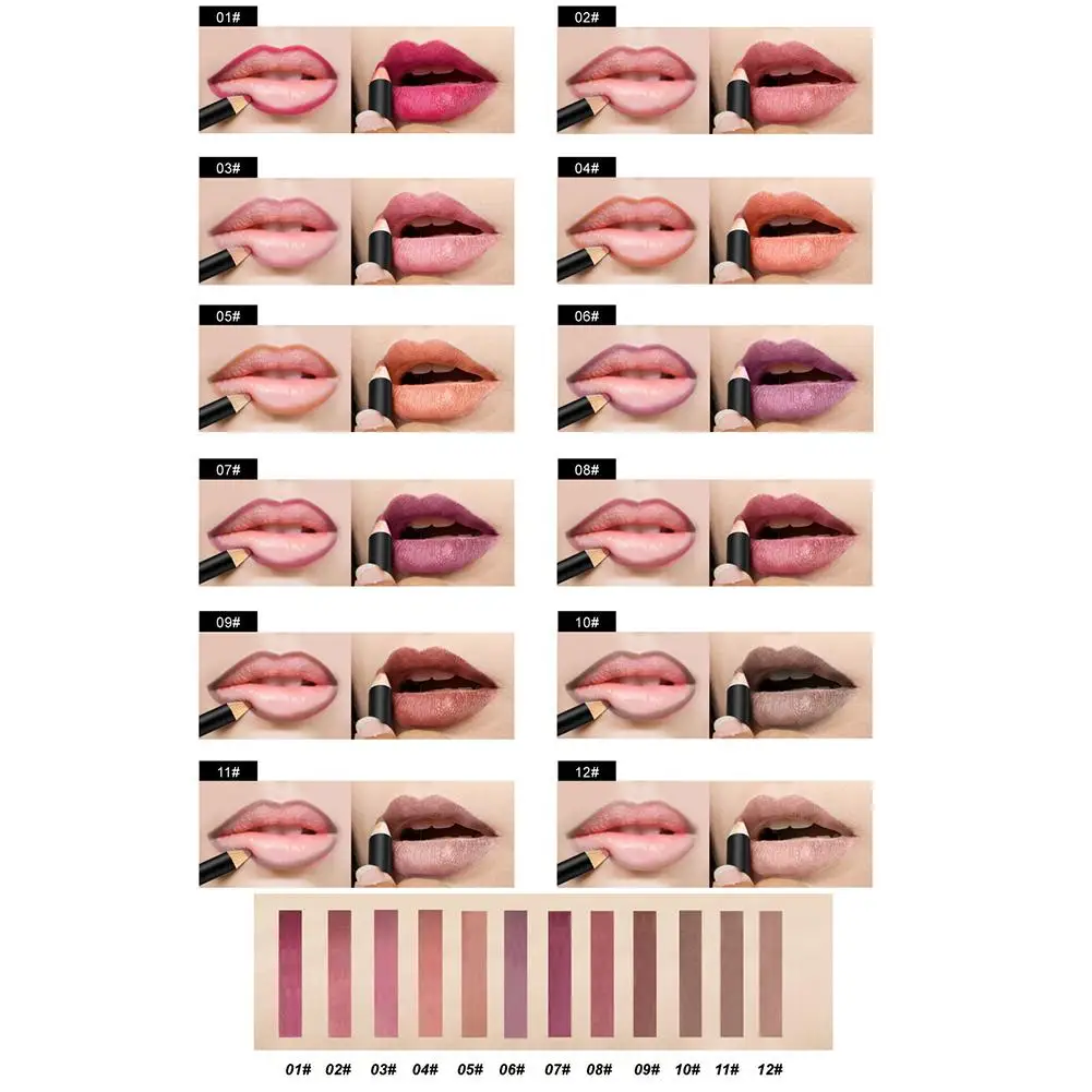 12 цветов матовый водостойкий стойкий блеск для губ Карандаш для губ Косметика для макияжа