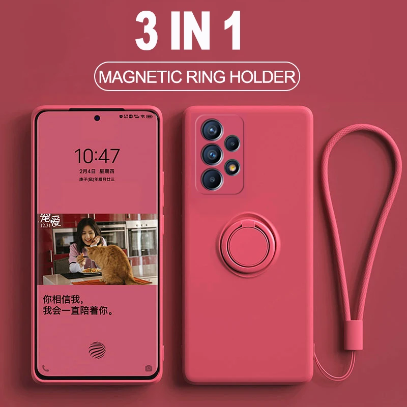 Чехол с жидким силиконовым кольцом-держателем для Samsung A52S, чех...