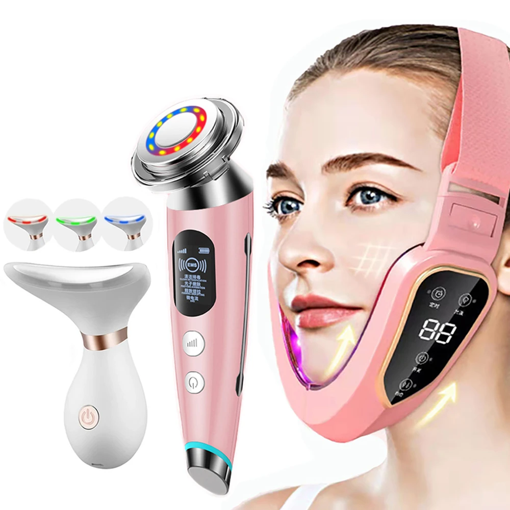 Устройство для лифтинга лица светодиодная фотонная терапия Вибрационный массажер для похудения лица двойной подбородок v-образная форма для подтяжки щек лица