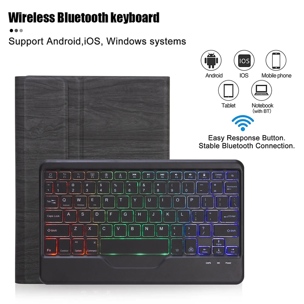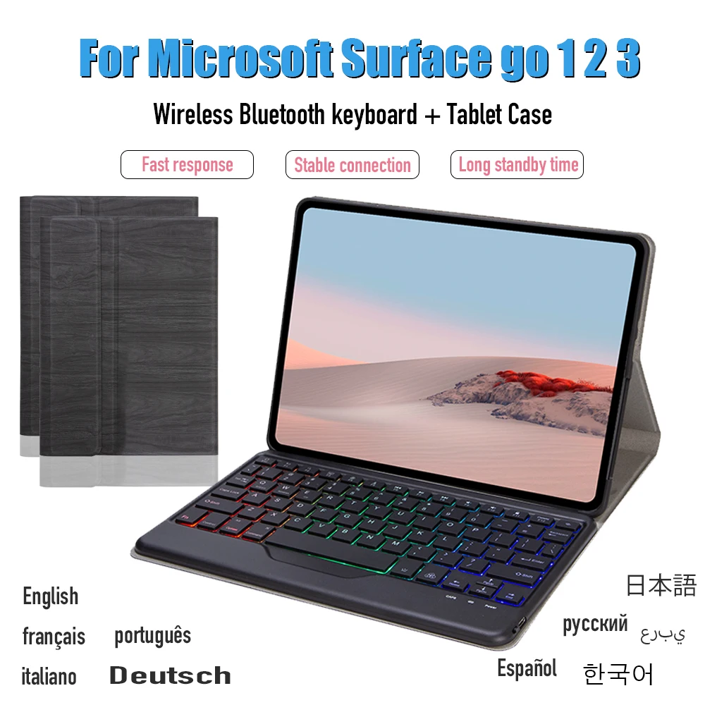 Чехол-кобура для Microsoft Surface Go 2 3 Go2 Go3, с трехцветной подсветкой, с текстурой дерева, кожаная Беспроводная Bluetooth-клавиатура, защитный чехол
