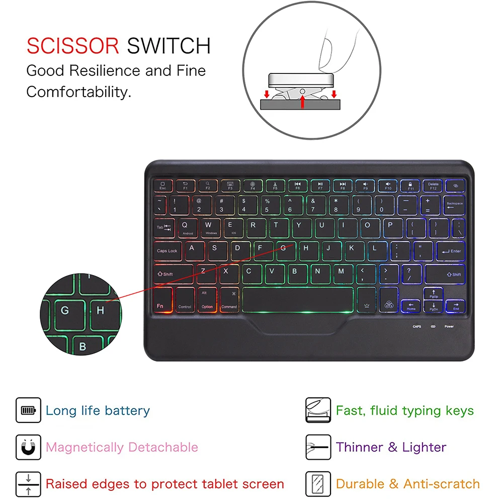 【Легкий и портативный 】Стильный Ультратонкий дизайн делает путешествие или бизнес-путешествие легким. Положить его в рюкзак, сумку для компьютера или чемодан никогда не займет слишком много места и не добавит лишнего веса.【 Долгосрочной перспективе use】Клавиатура и мышь имеют встроенные литиевые аккумуляторы, которые используется для более чем 20 дней после полной зарядки (2 часа непрерывного использования в день). Если вы не используете его более 15 минут, клавиатура автоматически начнет спать, чтобы сохранить питание. Если вы хотите продолжать использовать его, просто нажмите любую клавишу, чтобы разбудить клавиатуру.【Удобный Bluetooth keyboard】Клавиши клавиатуры имеют ножничную структуру, а квадратные шоколадные колпачки эргономично разработаны. С этой клавиатурой вы можете спокойно печатать на планшетах, Samsung и смартфонах, предоставляя вам удобный и приятный опыт ввода текста.【Стабильный bluetooth-разъем 】Клавиатура использует стабильную технологию Bluetooth 3,0, а рабочее расстояние может достигать 10 м. Есть два способа подключения мыши: USB и Bluetooth, plug and play, без других драйверов или опций.