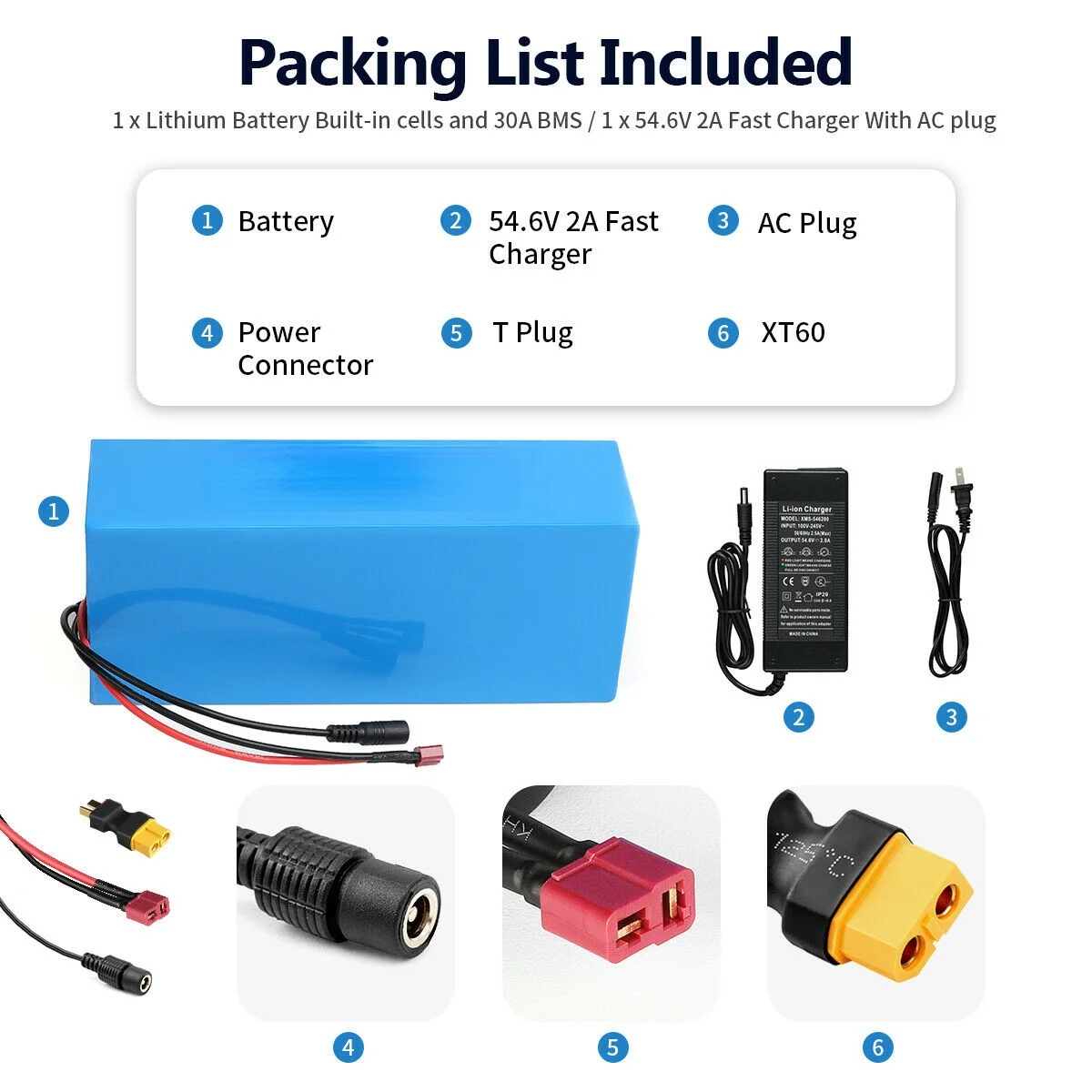 Литиевый аккумулятор Aleaivy, 48 В, 25 Ач, 21700, 5000 мАч, 13S5P, 48 В, 25 Ач, 1500 Вт, батарея для электрического велосипеда, 20 А, BMS, с зарядным устройством