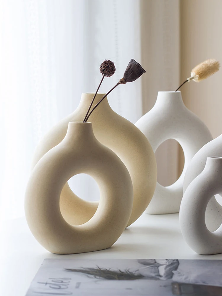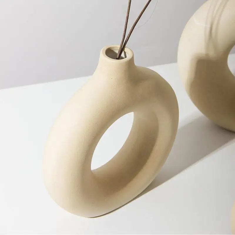 Круглая керамическая ваза в скандинавском стиле с отверстиями, пончики, цветочные аксессуары, аксессуары для офиса, рабочего стола, гостиной, интерьерный декор, подарок