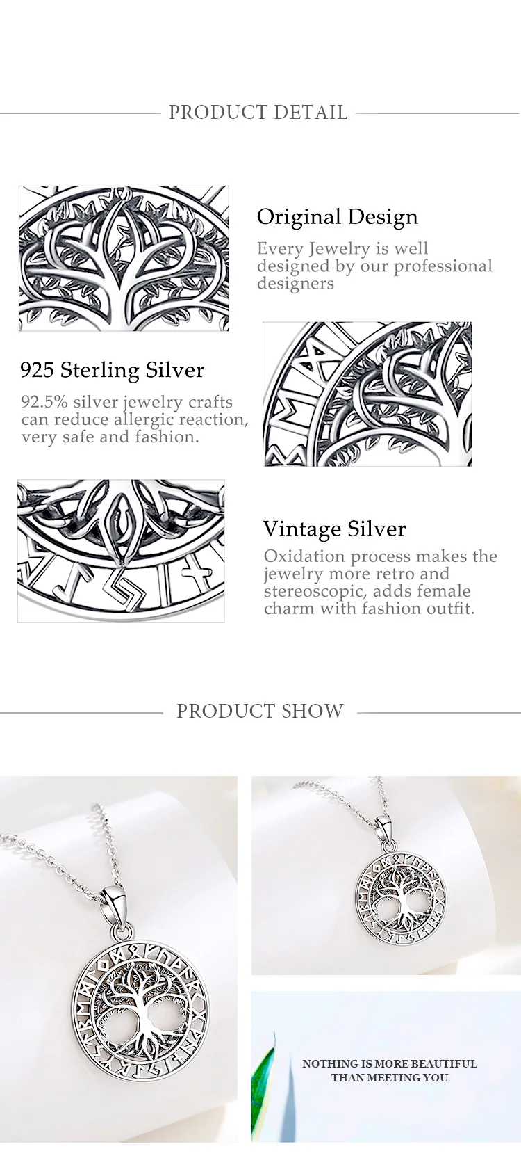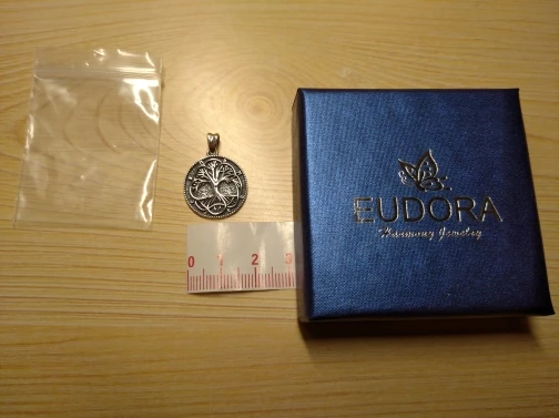 Продукт в точности соответствует описанию. Это очарование дерева старого серебряного цвета жизни. Это очень деликатный и линии дерева очень красивые. Я прибываю через 14 дней. Он поставляется в красивой шкатулке для драгоценностей с золотыми буквами, а подвеска находится внутри сумки. Есть инструкции по хорошей сохранности ювелирных изделий, которые сделаны из серебра. В крючке можно прочитать "S925". Большое спасибо Eudora за этот продукт. Я люблю это!