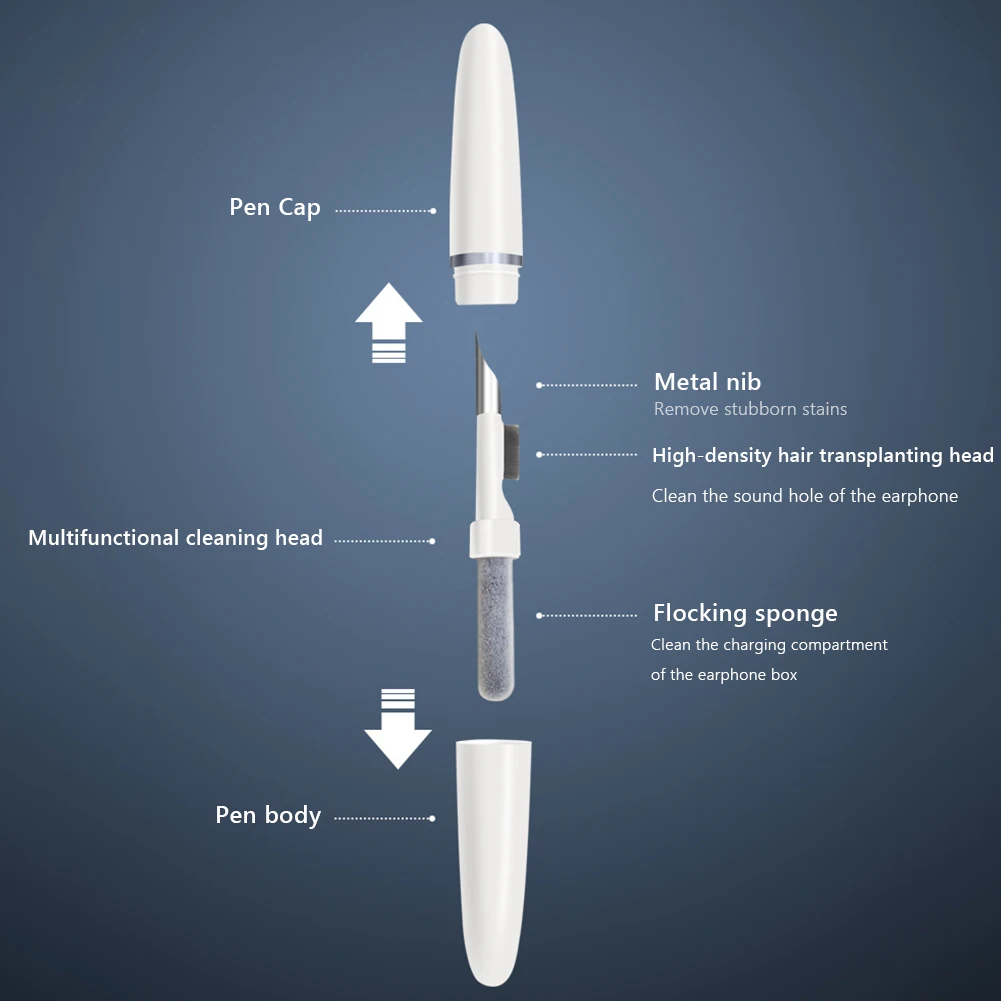 Эффективная очистка. Ручка очищает весь набор наушников, совместимых с Bluetooth, от небольшого отверстия затычек для ушей до зарядной камеры, 360 градусов чистится без мертвого угла, и ваши затычки для ушей более долговечны.