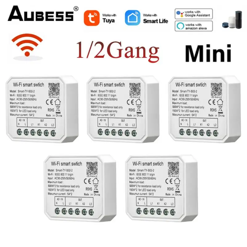 Умный мини-выключатель света Aubess Tuya, Wi-Fi, 12 клавиш, таймер SmartLife, приложение для дистанционного управления, работает с Alexa Google Home