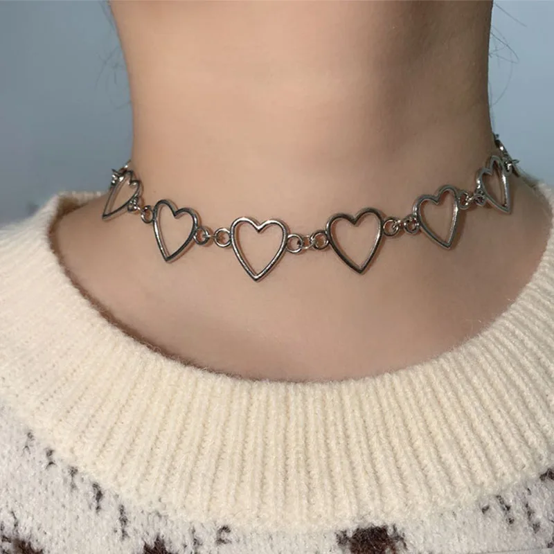 Простое Ожерелье-цепочка для шеи в форме сердца, модная цепочка до ключиц, Женский ошейник, ювелирные изделия, крупные ожерелья