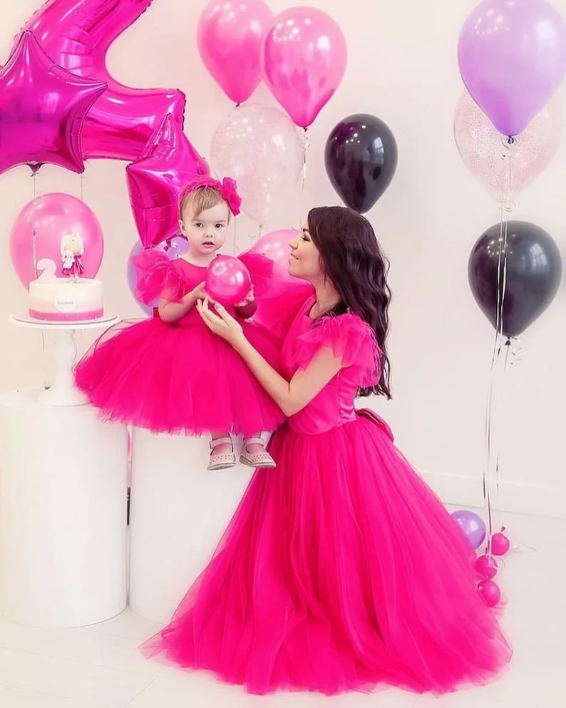 Милые цветные фатиновые халаты для мамы и ребенка для фотосессии, п...