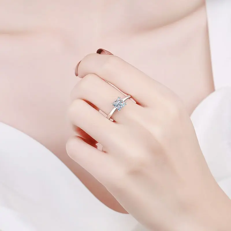Сертифицированное обручальное кольцо принцессы с моиссанитом, 1CT 2CT, бесцветные кольца VVS со стразами, обручальные кольца из стерлингового серебра