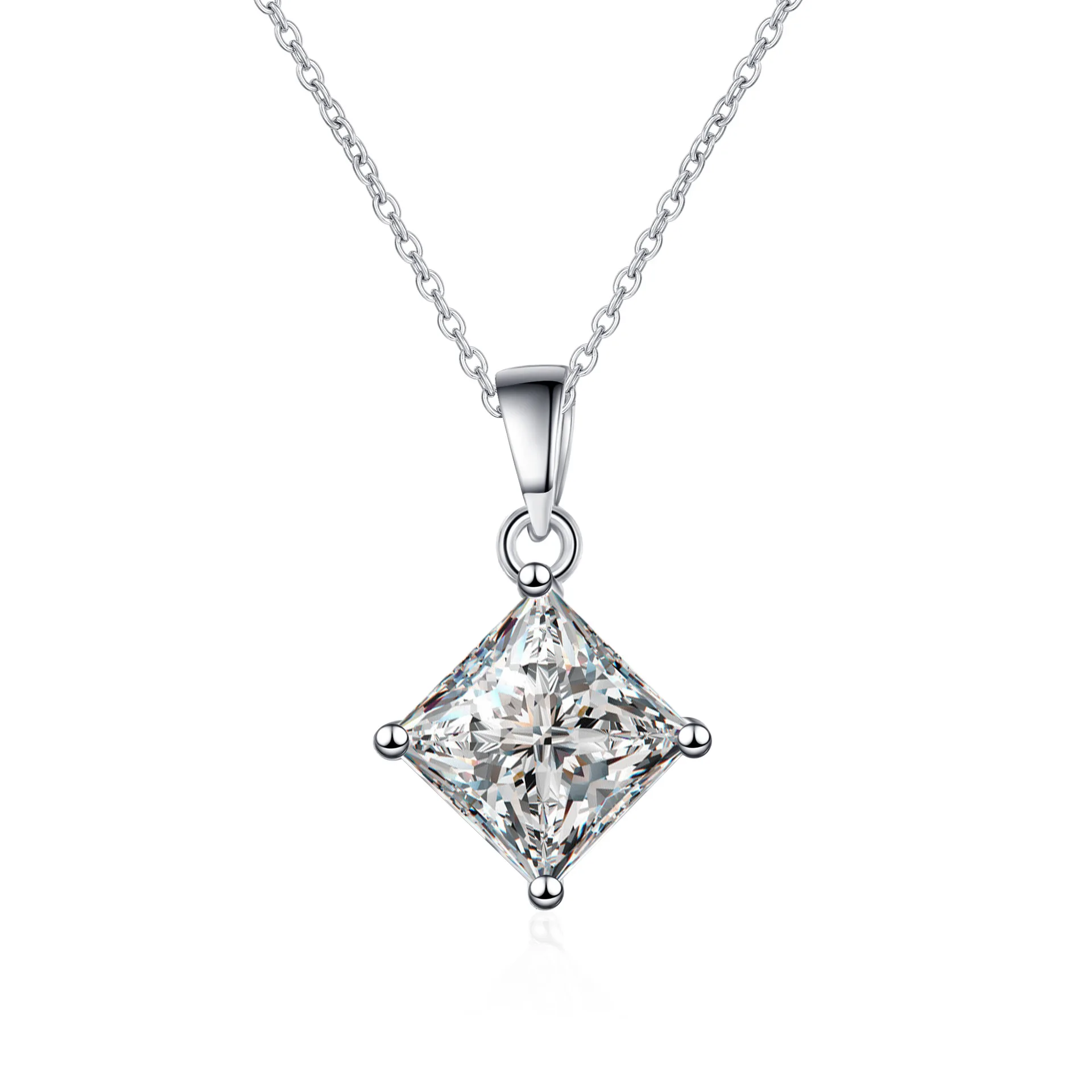 Ожерелье из стерлингового серебра 925 пробы, кулон с квадратным муассанитом для принцессы, 1 карат, 2 карата, ювелирное изделие с бриллиантами для свадебной церемонии невесты