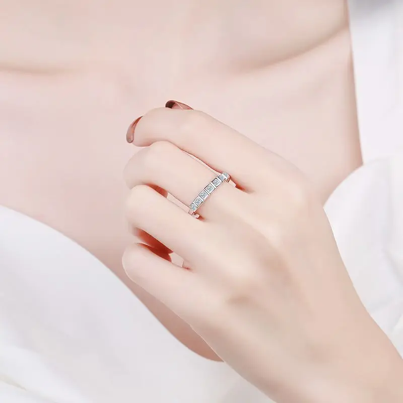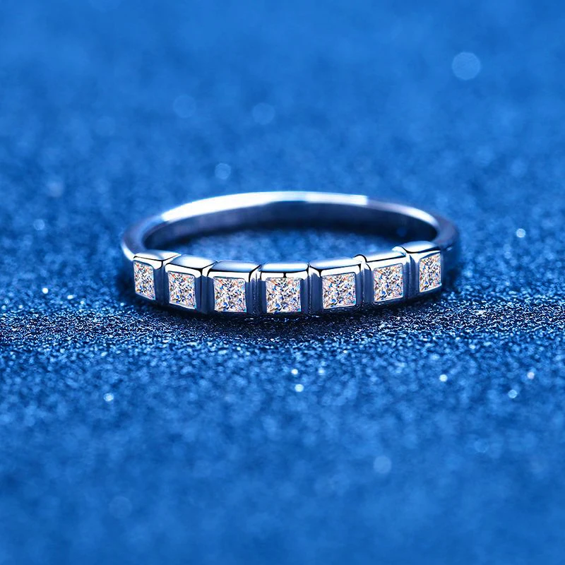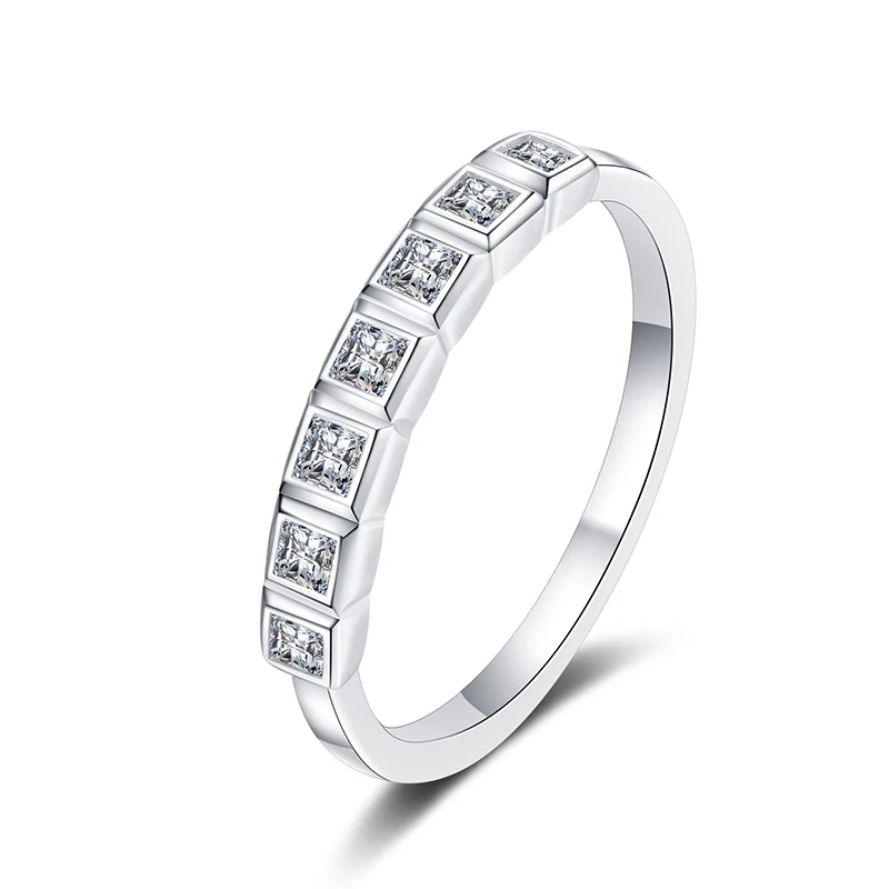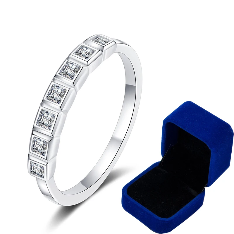 0.56CT лабораторное бриллиантовое кольцо пройти алмазное испытание Moissanite обручальные кольца Штабелируемый браслет принцесса вырезать 7 камней свадебное Обещание Кольца