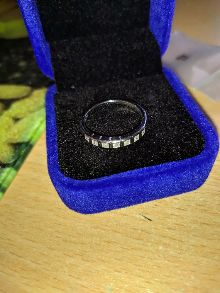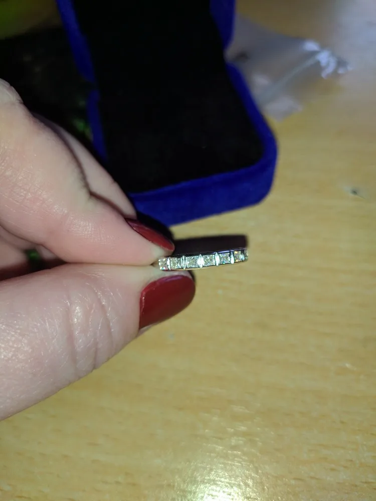 Продавец конкретный мошенник!Если вы вдруг захотите вернуть товар по бесплатному возврату,у вас не получится это сделать,сайт будет выдавать якобы «ошибку».Более того,вы не сможете даже просмотреть детали спора,т.к.тоже будет выдавать ошибку.Кольцо своих денег не стоит,дешевая подделка,муассаниты там и рядом не пробегали..