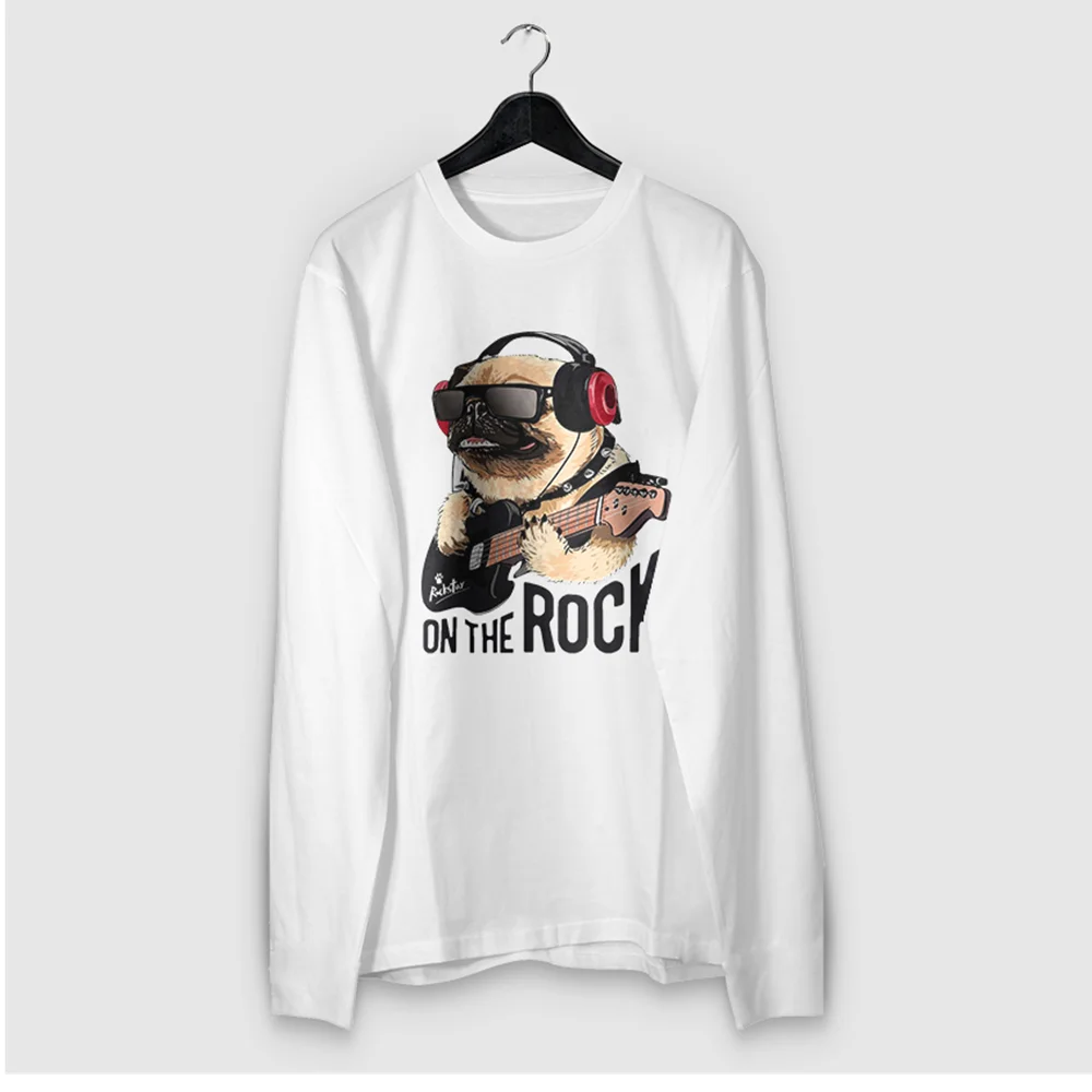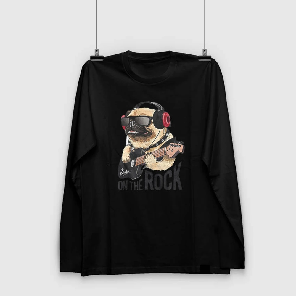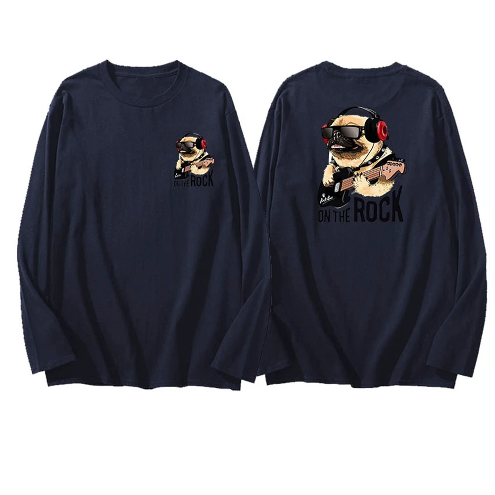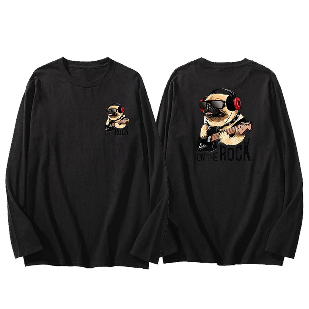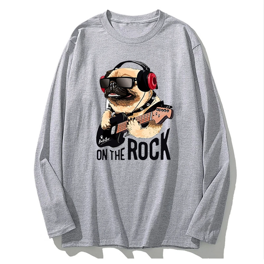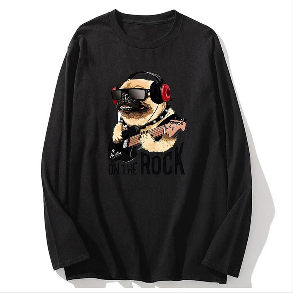 Футболка COOLMIND в стиле унисекс из 100% хлопка с длинным рукавом и принтом рок-мопса, Мужская хлопковая футболка с круглым вырезом, свободная футболка