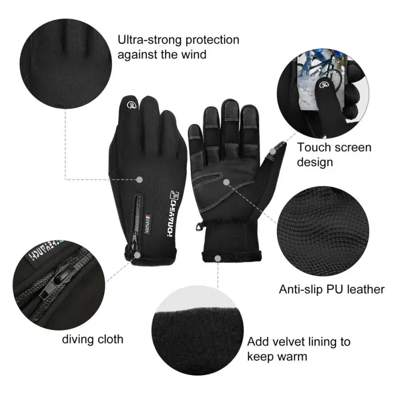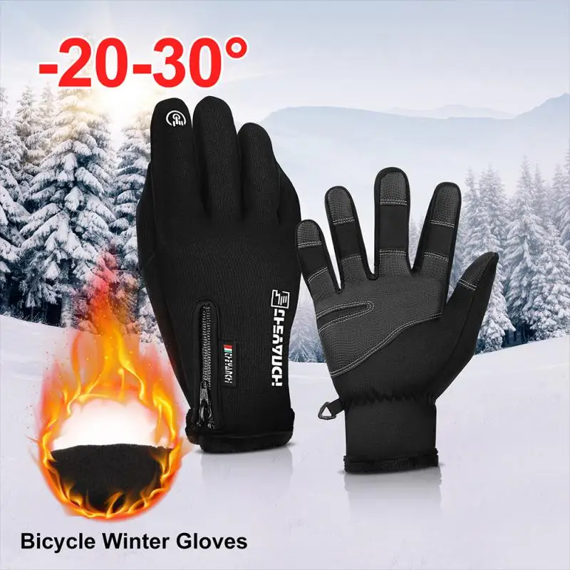 Зимние теплые велосипедные перчатки, перчатки с закрытыми пальцами для сенсорного экрана, водонепроницаемые перчатки для активного отдыха, велоспорта, лыжного спорта, велоспорта