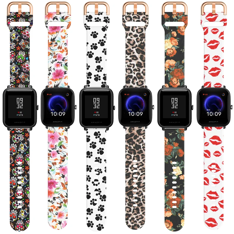 Силиконовый ремешок для Huami Amazfit Bip U Pro S Lite GTS3 2 2e Mini Watch 20 мм, сменный модный браслет с принтом, аксессуары