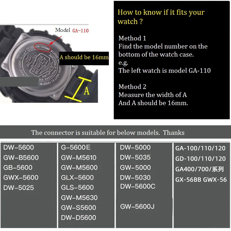 16 мм подходит для Casio G-Shock резиновый переходник100120 110120 аксессуары для модифицированных разъемов