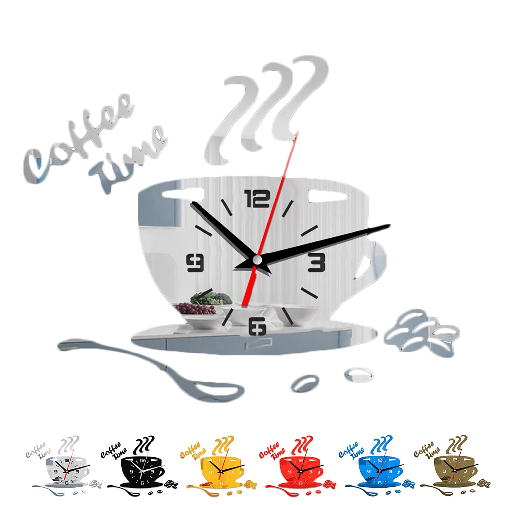 Настенные часы в форме кофейной чашки, креативные зеркальные 3d-час...