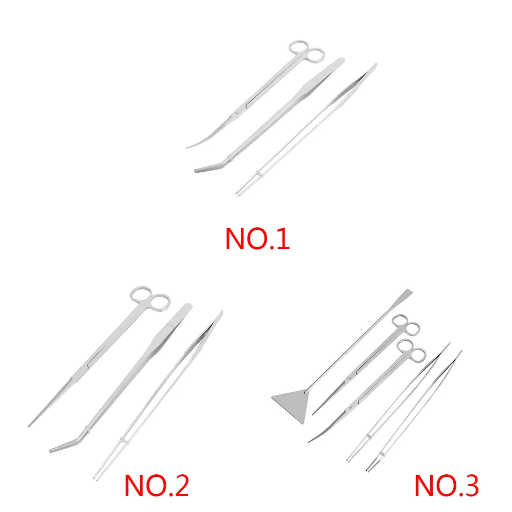 Характеристики: Материал: нержавеющая сталь. Цвет: как на фотографии. Прямая длина пинцета: 27 см. Длина изогнутого пинцета: 27 см. Прямые ножницы: 25,50*5,60 см. Изогнутые ножницы: 25,50*5,60 см. Гравия уравнитель: 31,50*7,00 см.