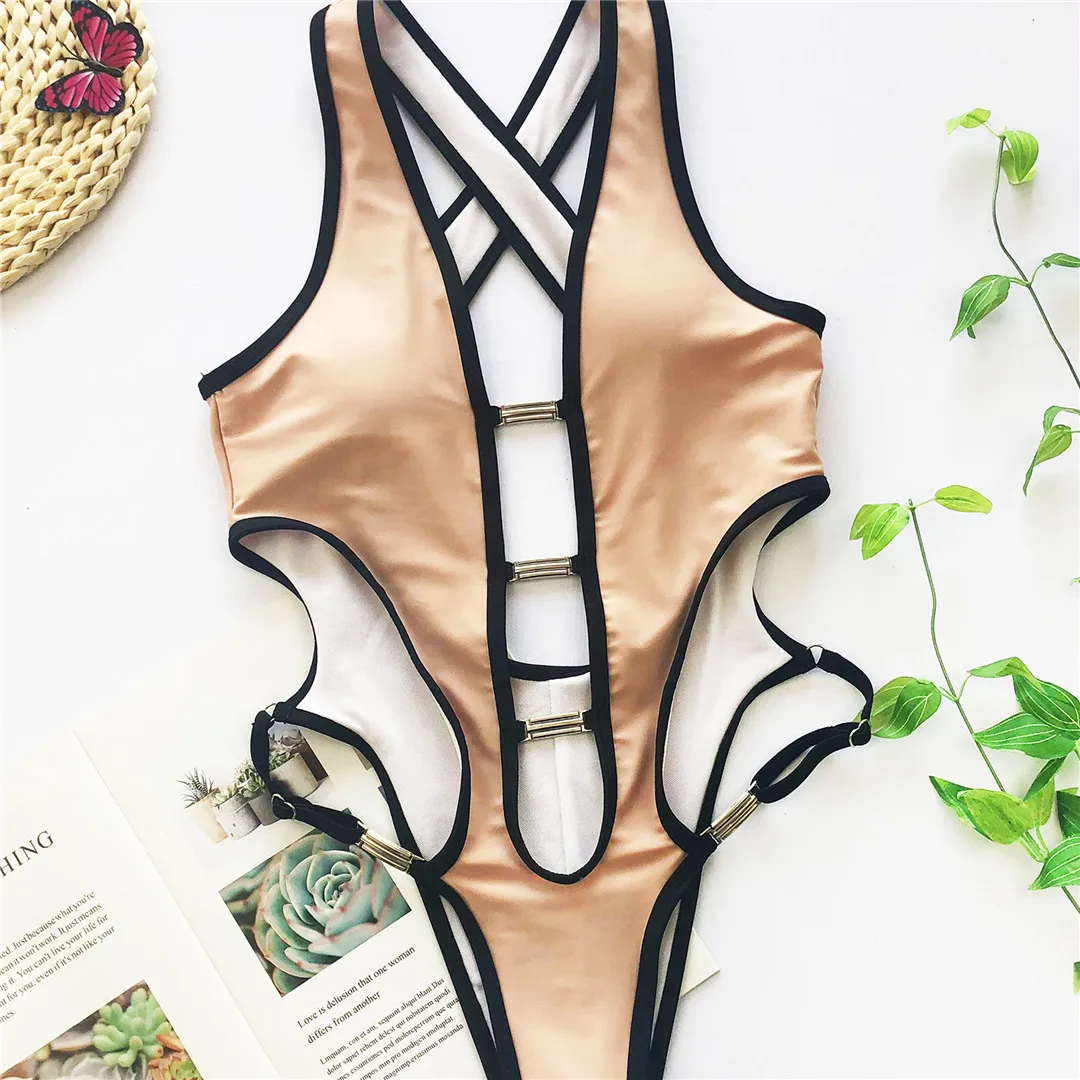 S - XL сексуальный цельный купальный костюм на шнуровке, женский ку...