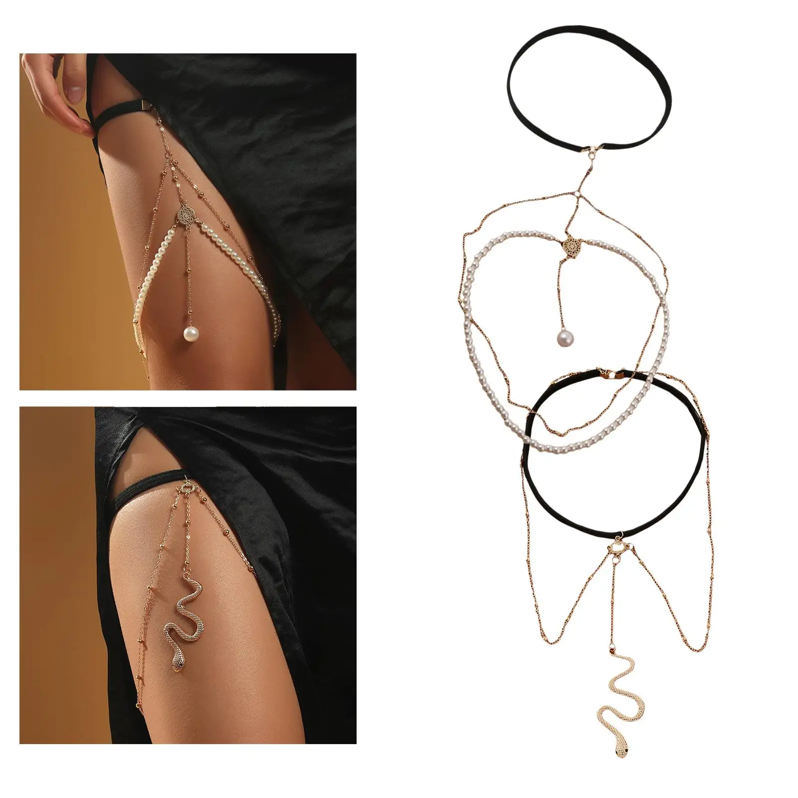 Змея, искусственный жемчуг, бедра, цепь, талия, искусственный брасл...