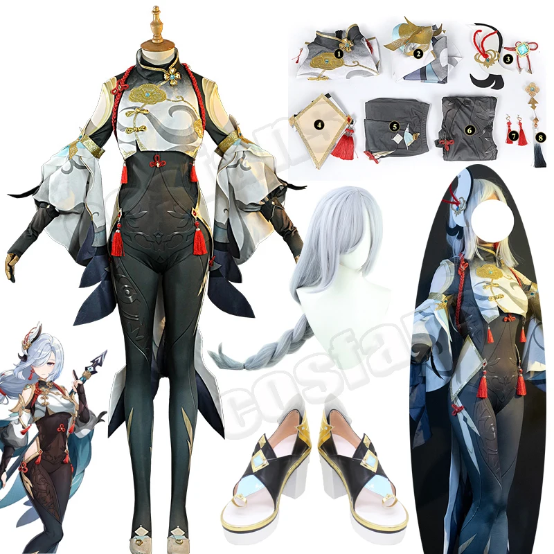 Костюм для косплея Shenhe Genshin Impact, костюм Shen He, костюм для игры, Униформа, парики на Хэллоуин, искусственная обувь, наряд для вечеринки для женщин, подарки