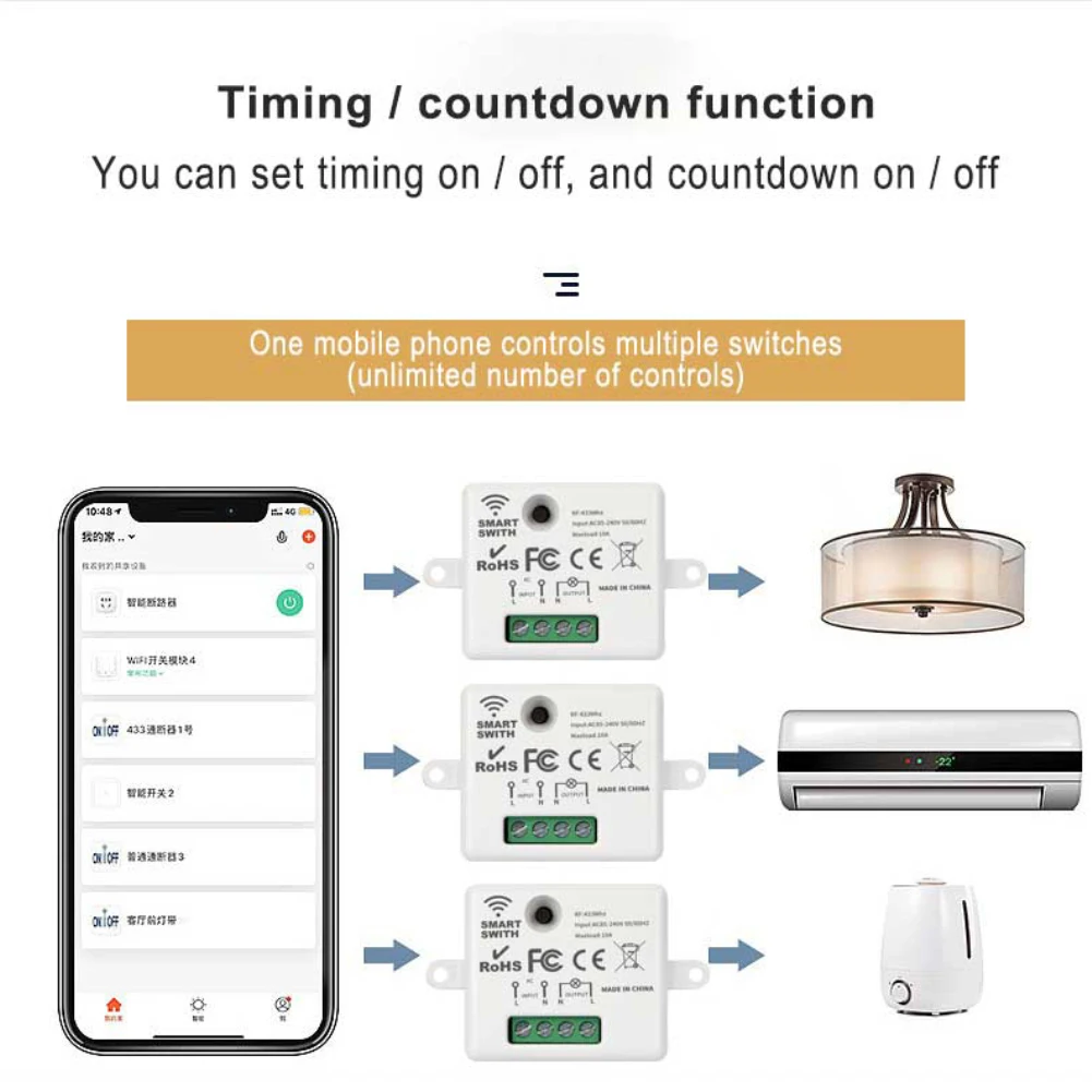 Модуль переключателя Wi-Fi Tuya Mini, модуль переключателя сделай с...