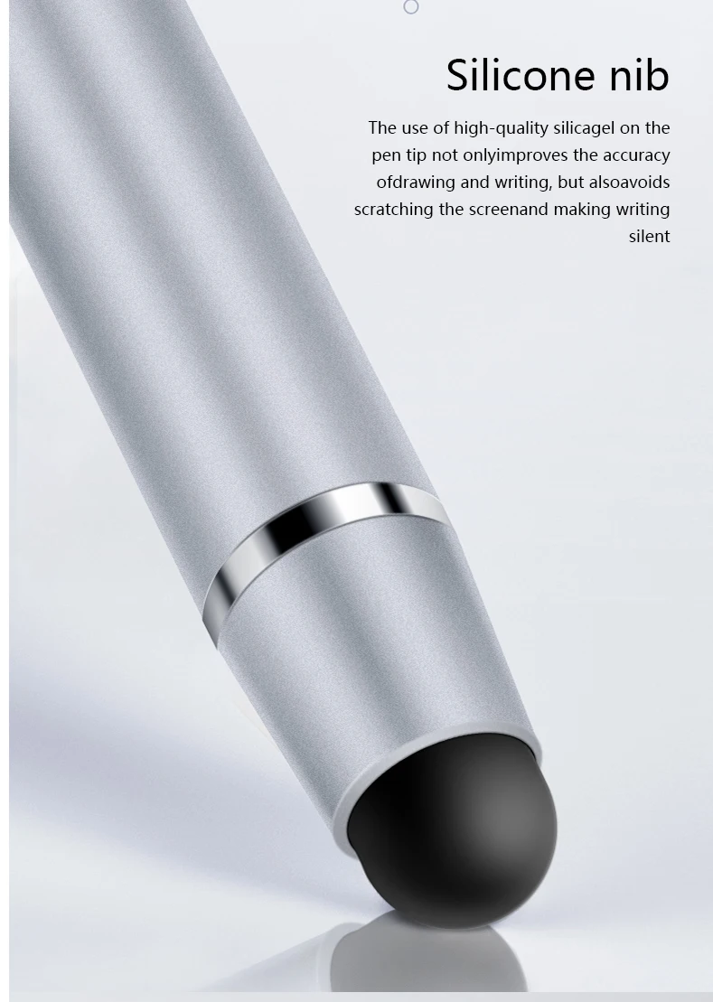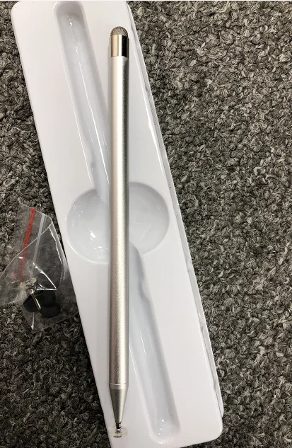 Стилус имеет небольшую металлическую текстуру снаружи, силиконовый наконечник не поцарапает экран, также предоставляется Запасной наконечник, который может очень хорошо нарисовать и прикоснуться к экрану. Это очень приятная покупка, и время доставки также быстрое.