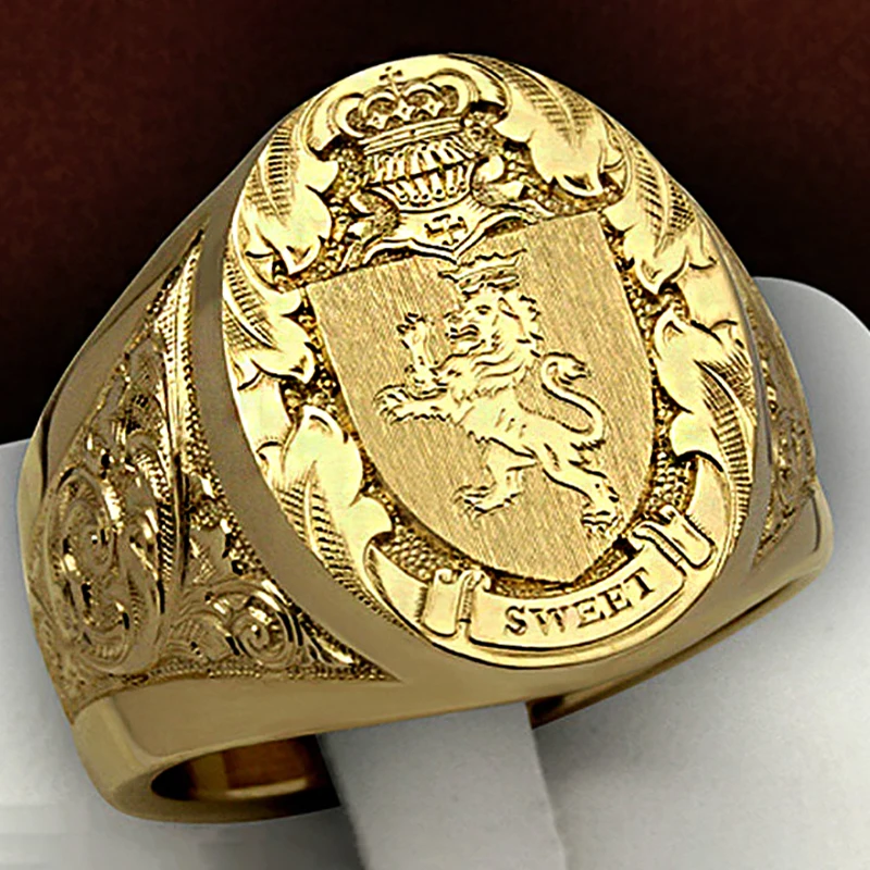 кольца 2021 тренд Мужское позолоченное кольцо с короной и львом, в ...