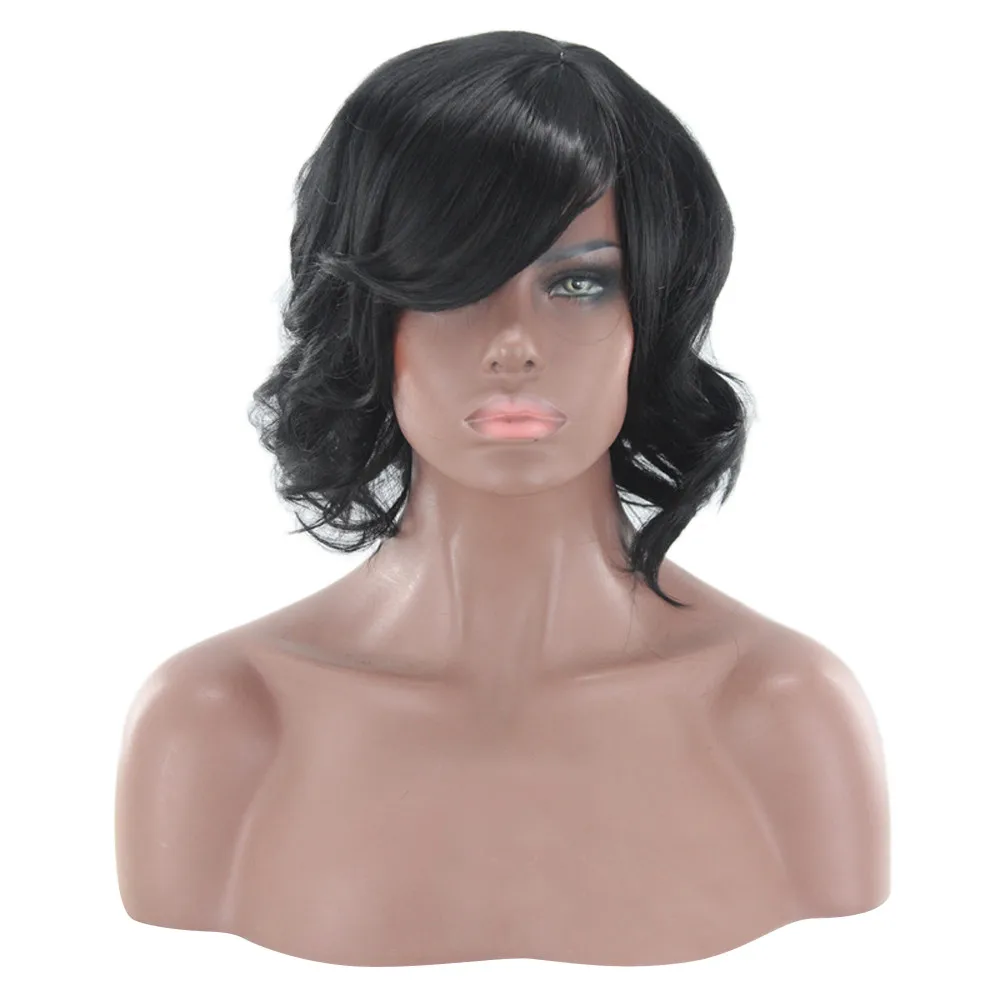 Женский, черныйБразильские короткие волнистые кудрявые расставание Высокая температура волокна парик волос