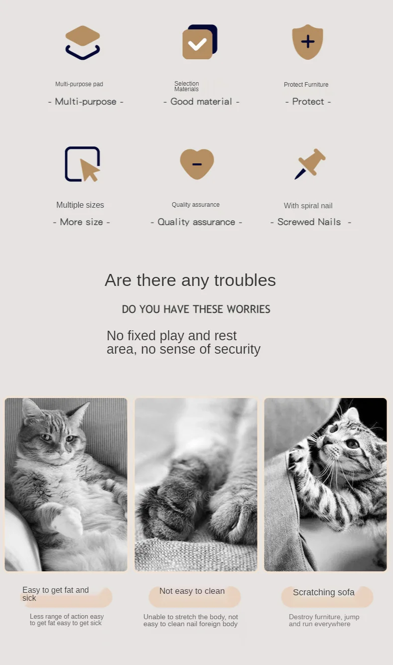 1. Этот продукт принимает три стиля коврик из сизаля/соломенный коврик/ковер для защиты кошачьих когтей от вреда.