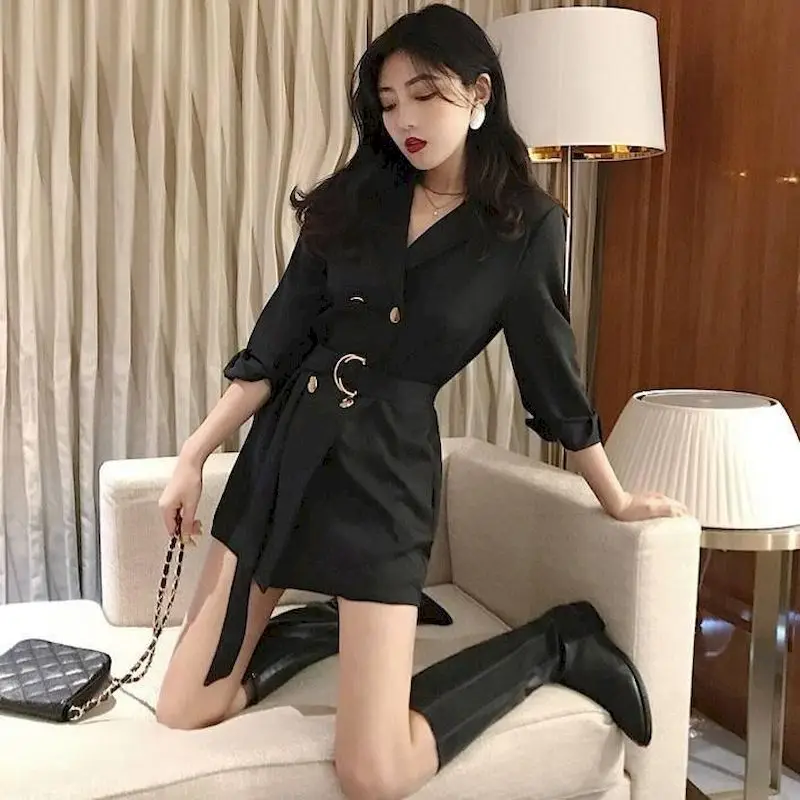 Женский однотонный офисный Блейзер, элегантный двубортный пиджак в Корейском стиле Харадзюку, весеннее платье в стиле Харадзюку