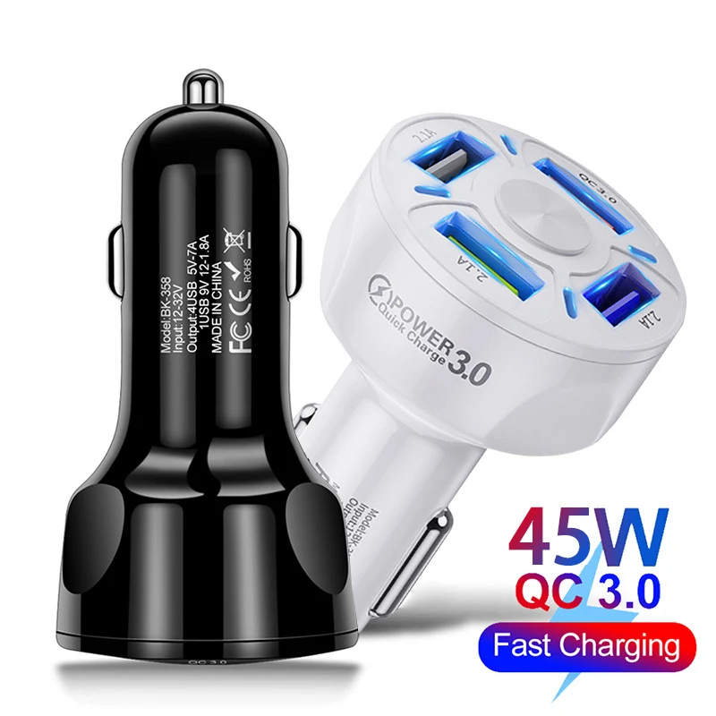 4 порта USB автомобильная зарядка 45 Вт Быстрая зарядка 7A мини Быстрая зарядка для iPhone 11 Xiaomi Huawei быстрое зарядное устройство адаптер в автомобиле