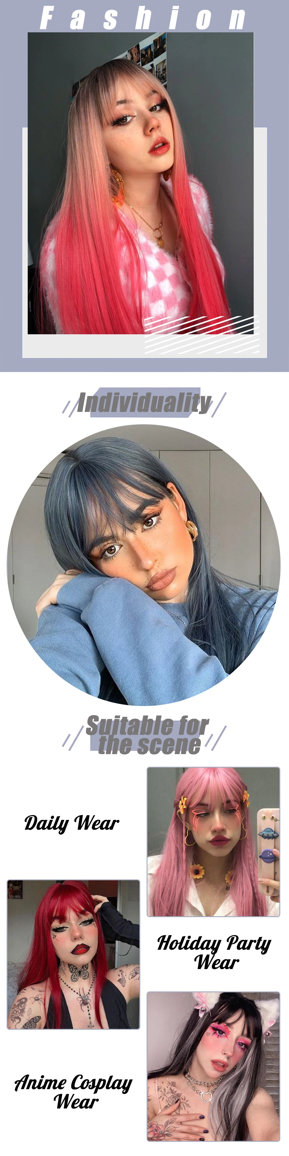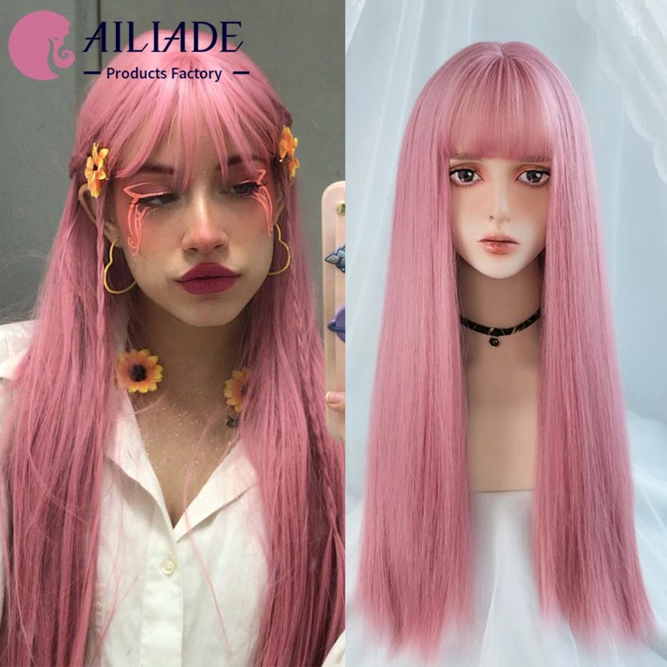 Парик AILIADE синтетический женский, длинные прямые розовые и синие волосы с челкой, термостойкий, для косплея вечеринки