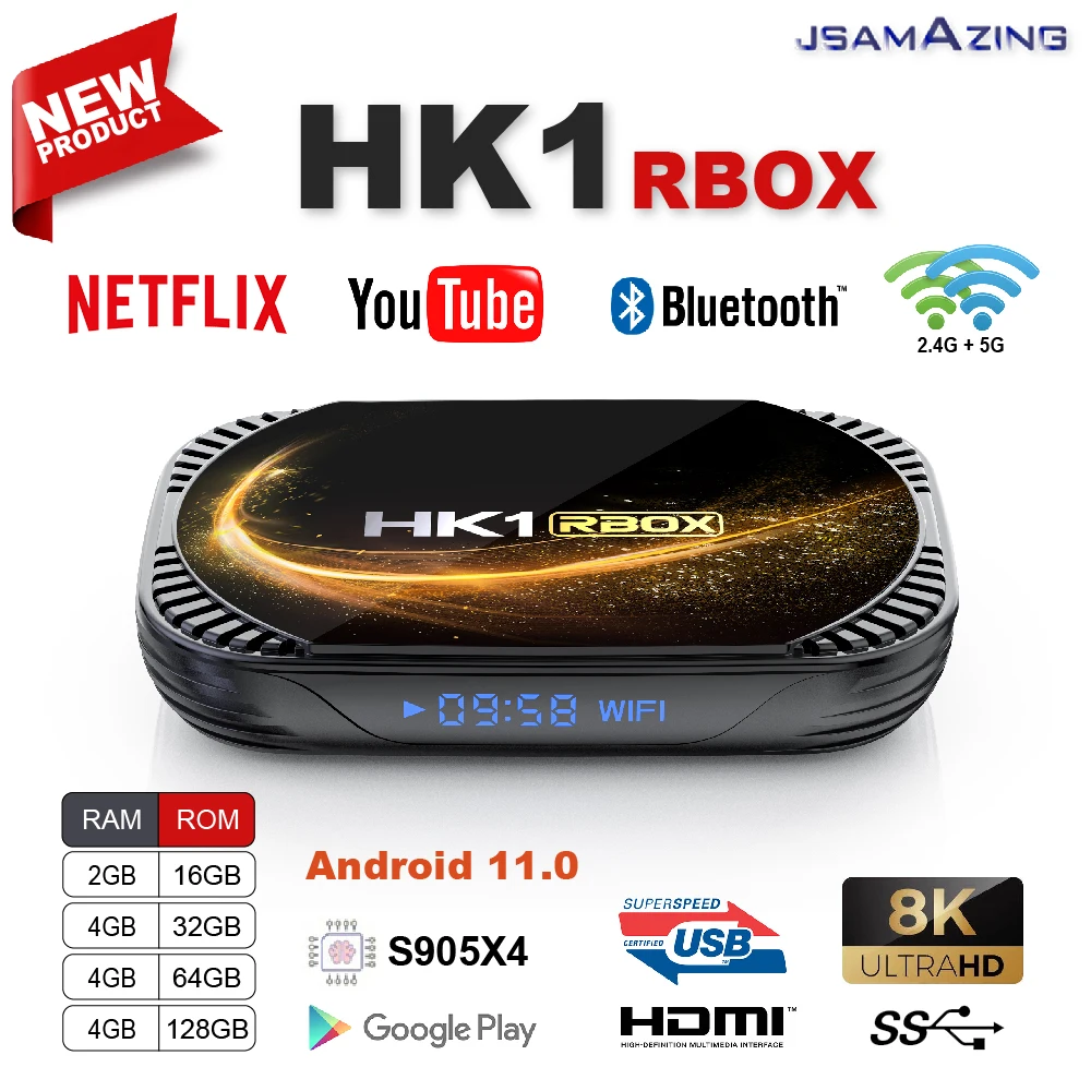 Приставка Смарт-ТВ HK1 RBOX X4S, Android 11,0, Amlogic S905X4, 8K, 4 ГБ, 32 64128 ГБ, 3D, Wi-Fi, 2,4G и телефон, поддержка Google Player, Youtube, Netlflix