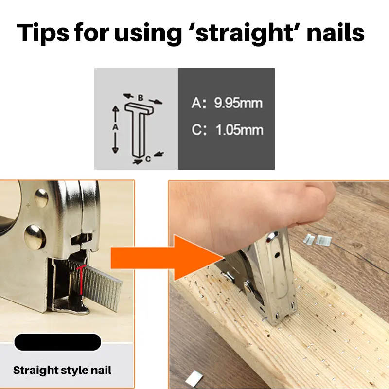 -Простота установки и использования-ручные штапельные пистолеты изготовлены из толстой углеродистой стали, руководствуясь принципом пружинной пружины-обратной силы, долговечности.